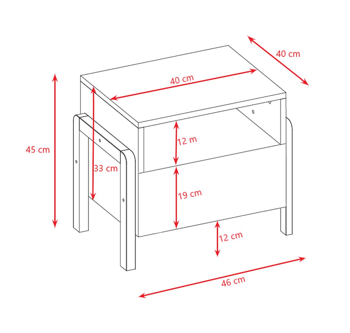 Stolík má jeden praktický uzatvárateľný šuplík a jeden otvorený priestor, ktorý ponúka pohodlný prístup k predmetom dennej potreby.