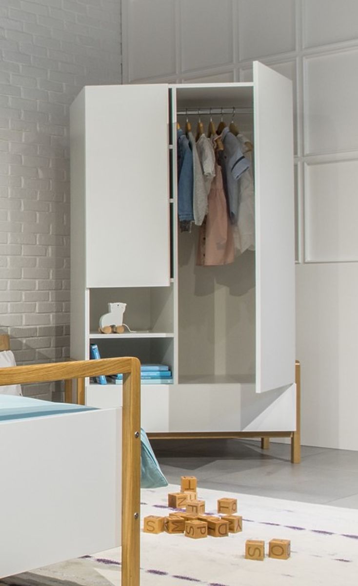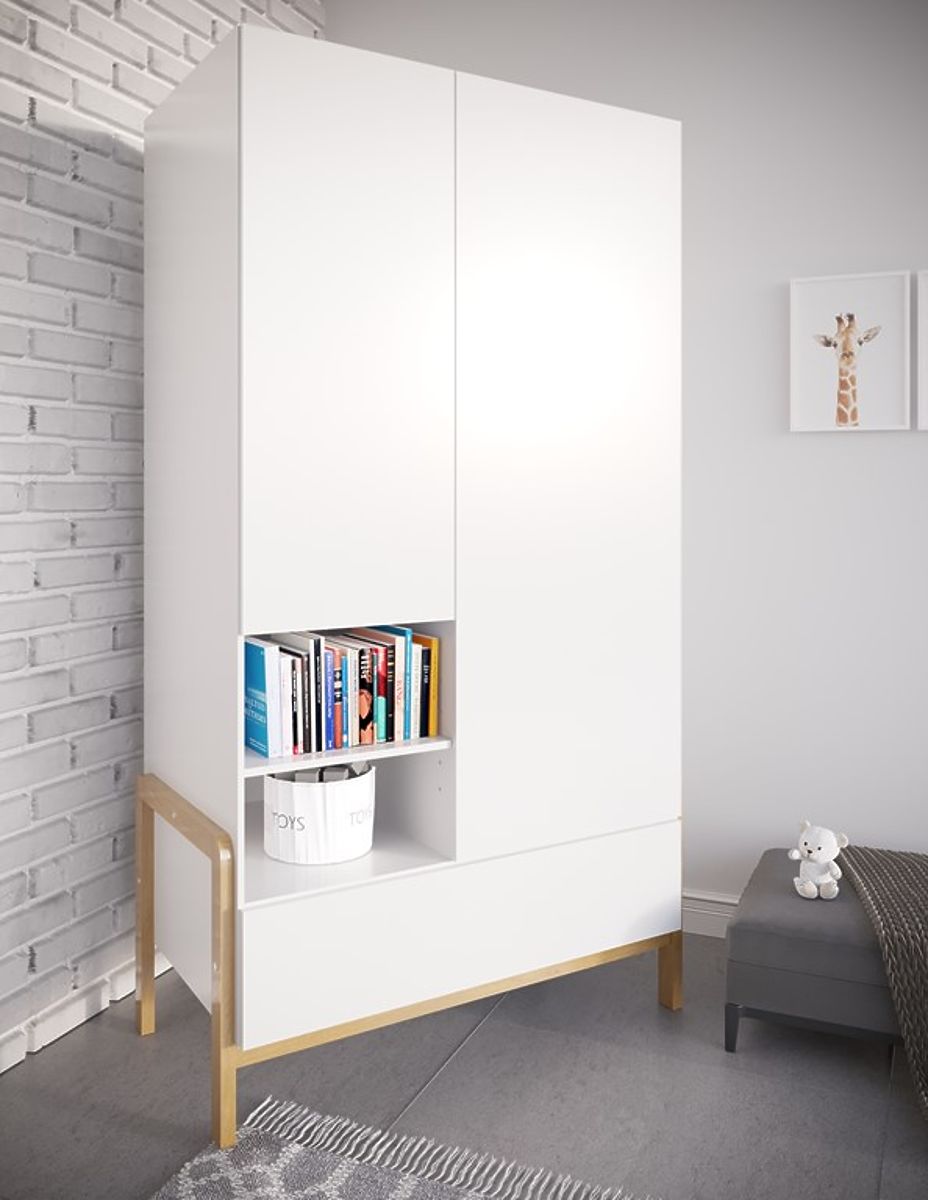 Krásna biela dvojdverová šatníková skriňa Viktor v škandinávskom štýle dodá šmrnc ako dievčenskej, tak i chlapčenskej izbe. Toto originálne riešenie skrine ponúka množstvo úložného priestoru.