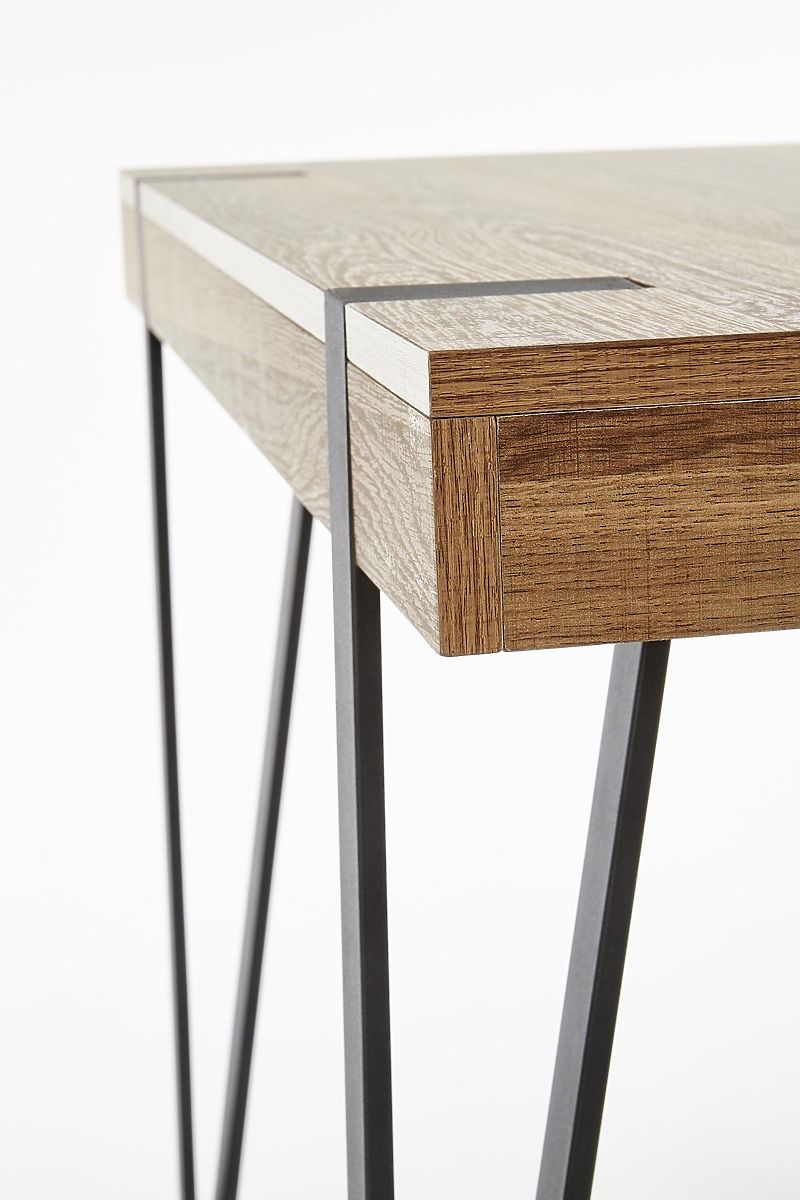 Elegantný písací stôl s medovým orechom a čiernou oceľovou konštrukciou. .. viac