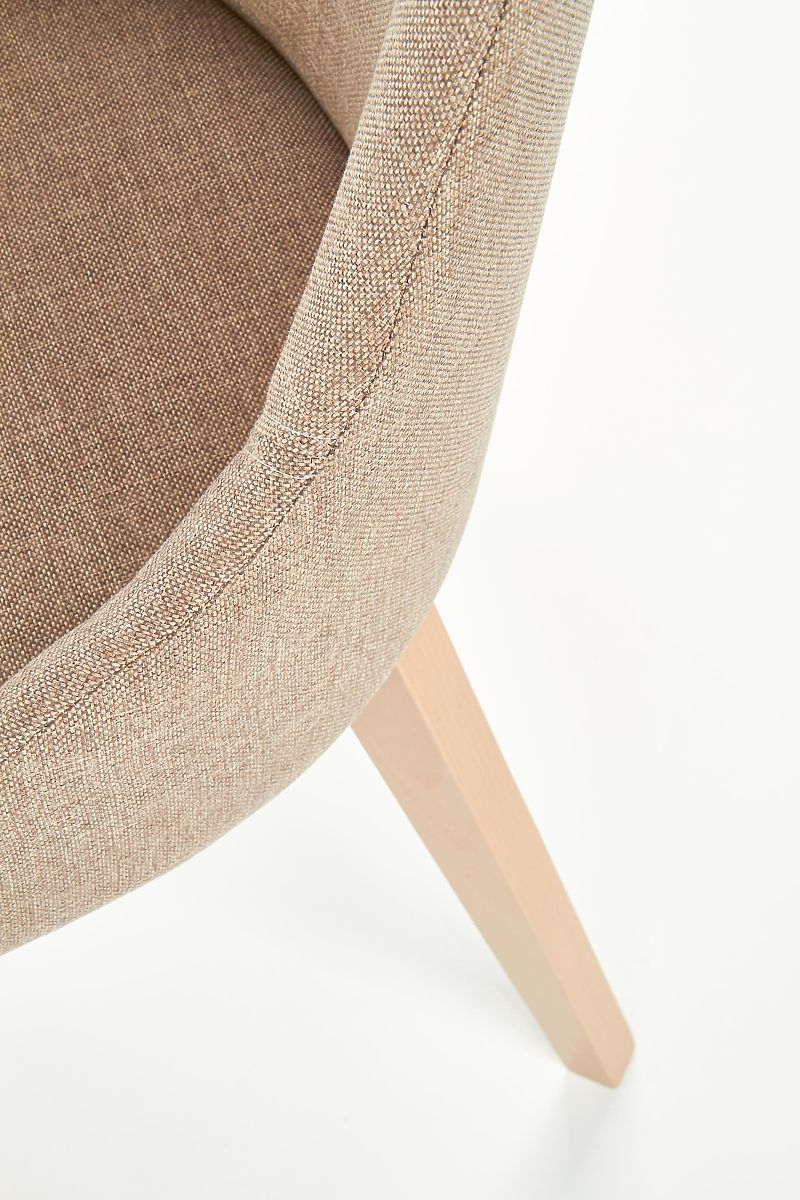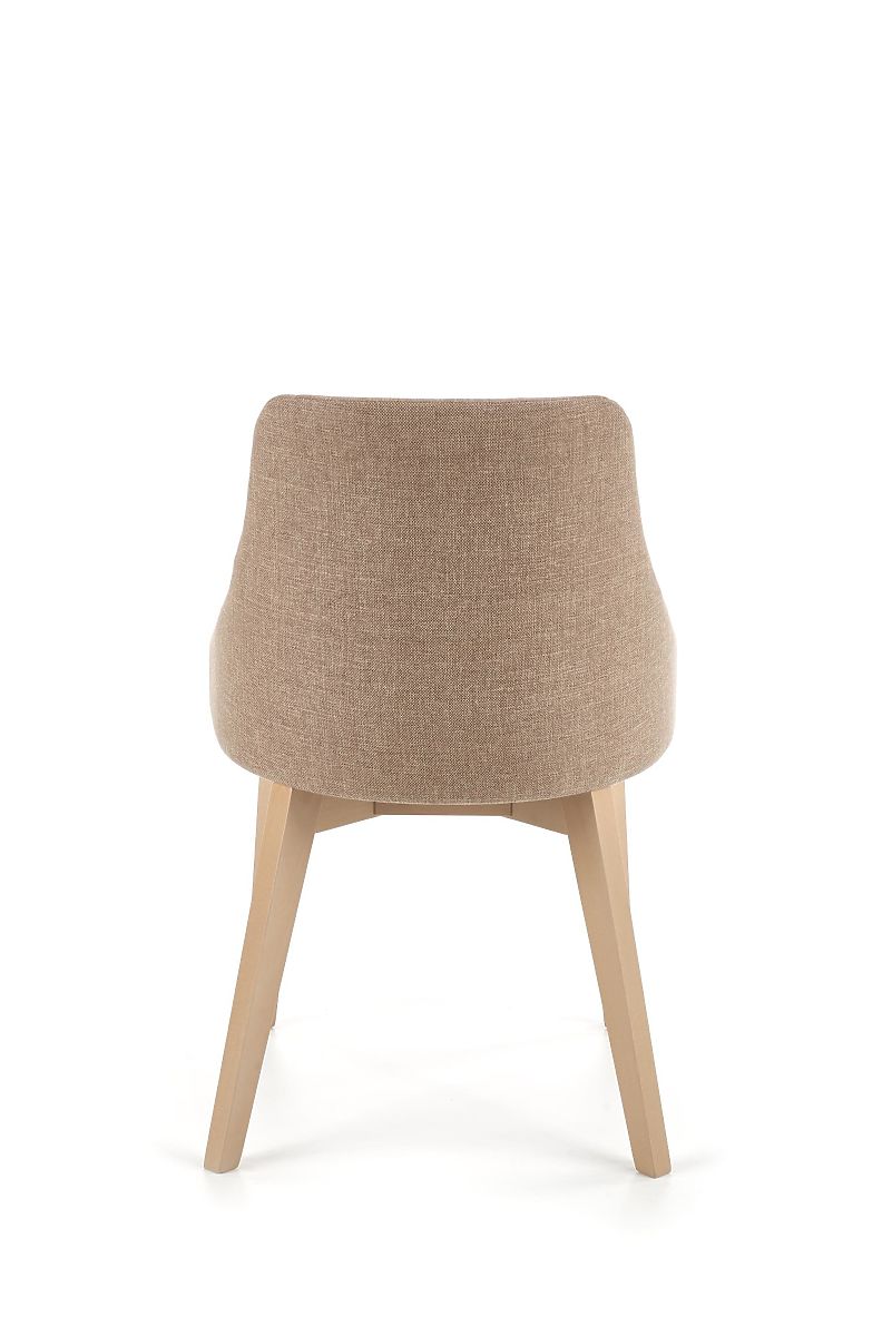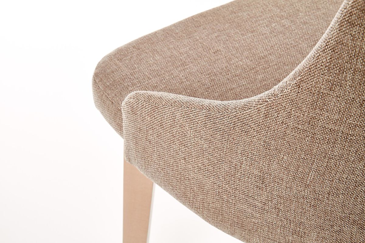 Konštrukcia stoličky je vyrobená z masívneho bukového dreva v odtieni dub sonoma. Sedák aj operadlo sú čalúnené príjemnou látkou hnedej farby.