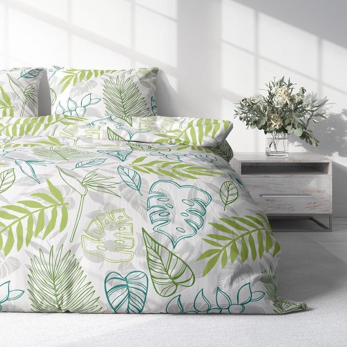 Svieži závan prírody do vašej spálne prinesie tieto krásne obliečky s motívom veľkých listov rastlín. Vďaka hebkému mikrovláknu , z ktorého sú obliečky vyrobené, bude spánok pohodlný a príjemný ako nikdy predtým. Farby posteľnej bielizne si zachovajú svoju sýtosť a intenzitu aj po viacerých praniach. Praktický zips zaručene uľahčí povliekanie vankúšov a perín.
