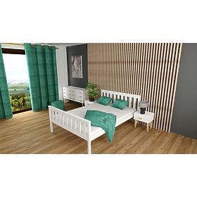 Posteľ je zhotovená z kvalitného borovicového masívu, vďaka čomu je pevná, odolná a vyniká dlhou životnosťou.