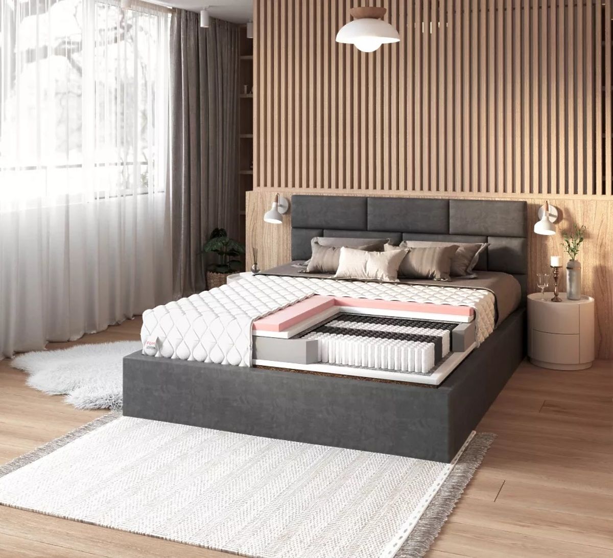 Ak uprednostňujete obojstranný matrac s tvrdou a mäkšou stranou, ktorý vám zaručí vyvážený a dokonalý spánok, je IVREA o výške 22 cm tou správnou voľbou. Matrac sa skladá z niekoľkých rôznych vrstiev, ktorých základom sú taštičkové pružiny so 7 zónami podpory tela. Vďaka tomu bude každá časť vášho tela počas spánku v úplnom pohodlí. Navyše znižuje nepohodlie vyplývajúce z pohybov druhej osoby a zaisťuje tak neprerušovaný hlboký spánok.