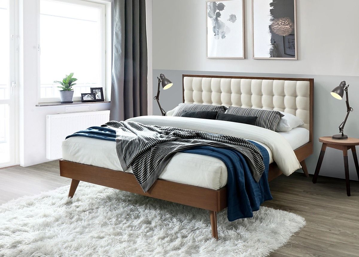 Posteľ je vyrobená z kvalitného tmavého dreva, ktoré dodáva posteli prirodzený a teplý vzhľad. Čalúnenie na hlavovej časti postele pridáva pohodlie a eleganciu. Táto kombinácia dreva a čalúnenie je dokonalým stelesnením luxusu.