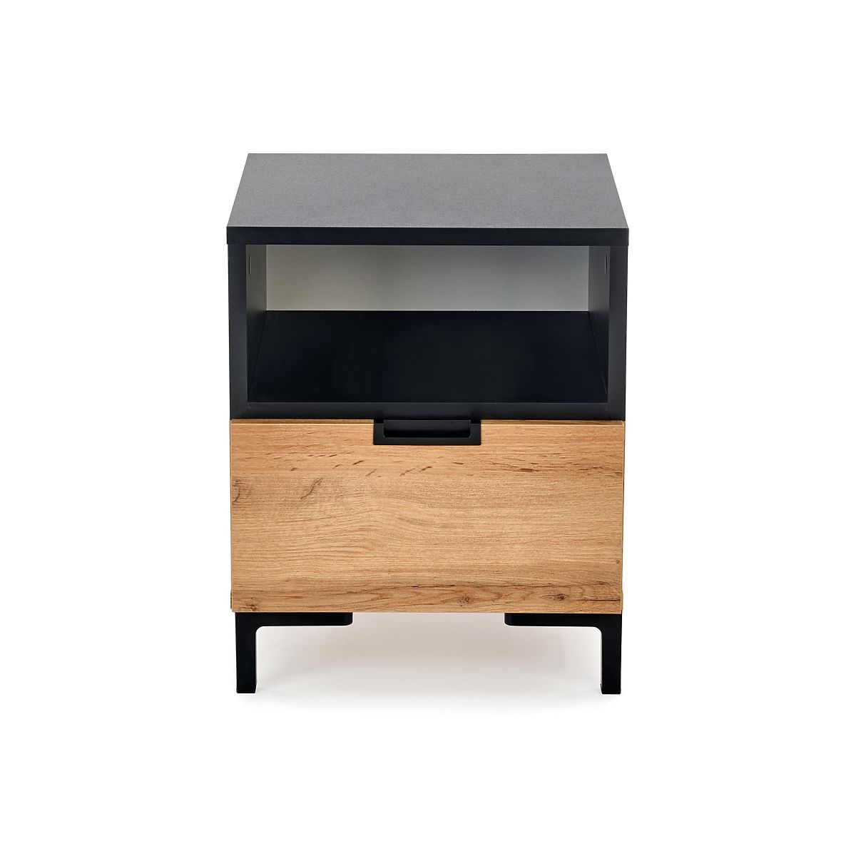 Nočný stolík je vybavený praktickým šuplíkom na uskladnenie kníh, okuliarov, alebo ďalších osobných predmetov, a udržuje tak vašu spálňu v poriadku. Pevné drevené nôžky z duba Wotan zaisťujú stabilitu a odolnosť tohto nočného stolíka. Tento nočný stolík je nielen štýlovým kúskom nábytku, ale aj praktickým doplnkom pre váš nočný odpočinok.