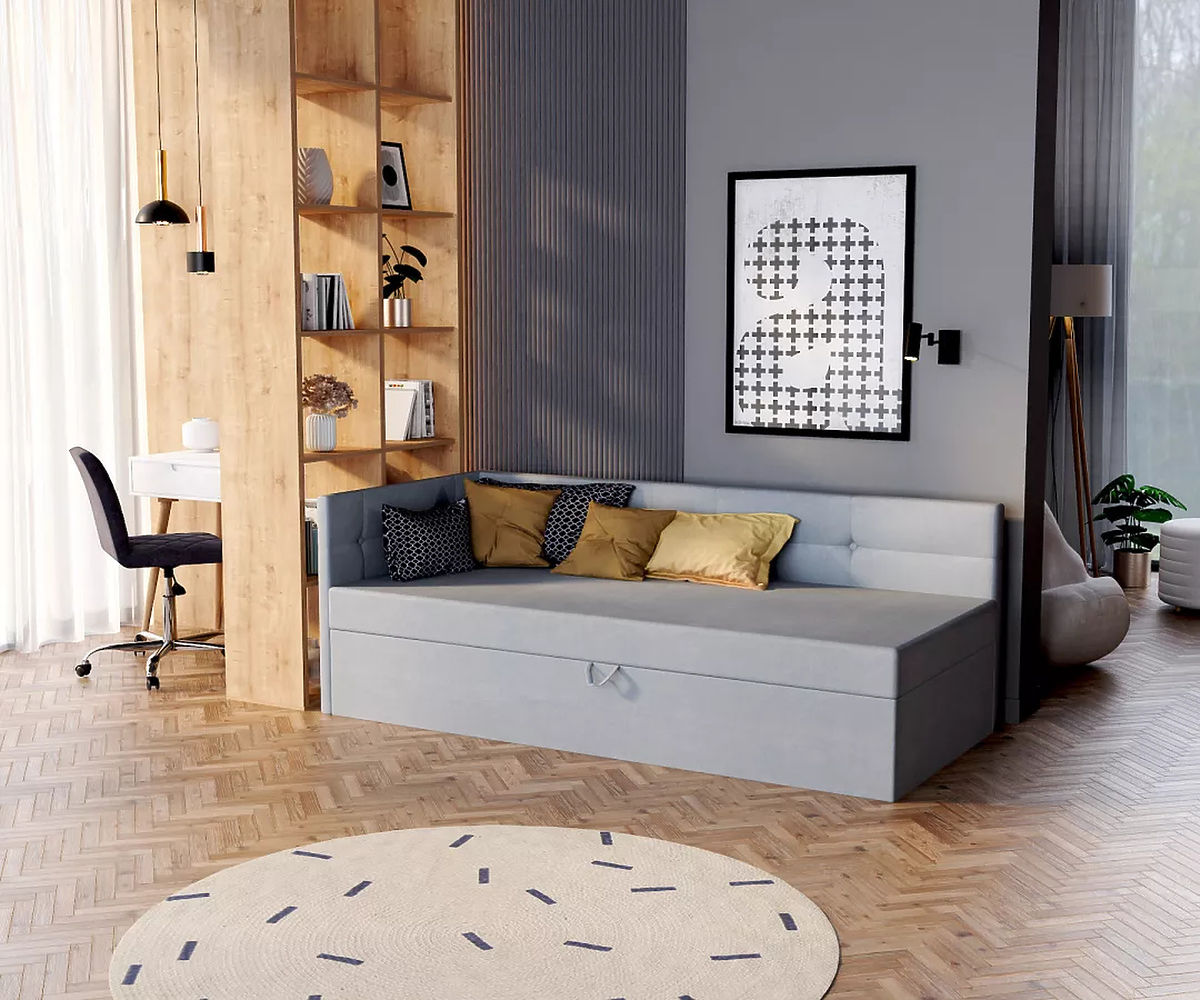 Moderná čalúnená posteľ BILLY s rozmermi 200 x 90 cm je skvelou voľbou pre tých, ktorí hľadajú štýlový nábytok do svojich spální. Okrem kvalitného penového matraca s praktickým držadlom pre jednoduché zdvíhanie ponúka posteľ aj úložný priestor pod posteľou. Táto funkcionalita umožňuje ukladanie rôznych doplnkov do spálne a pomáha udržiavať uprataný vzhľad spálne.