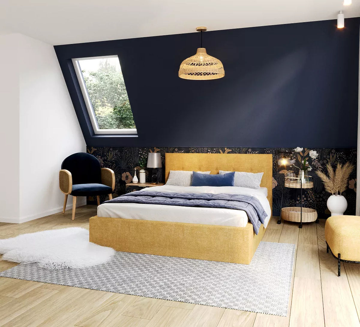 Čalúnená posteľ TULSA s rozmermi 160 x 200 cm v žltej farbe je skutočne vynikajúcou voľbou pre vašu izbu. Táto posteľ prináša do miestnosti výraznú kombináciu elegancie a pohodlia, čo je ideálne pre páry hľadajúce priestranné a štýlové miesto na oddych. Žltá farba je spájaná s radosťou, optimizmom a energiou. Vytvára slnečnú a sviežu atmosféru, ktorá môže oživiť vašu izbu a zároveň pridať teplý a pozitívny nádych.