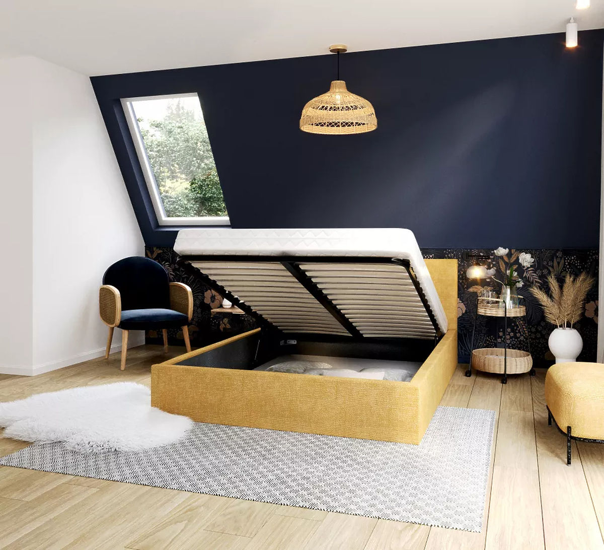 TULSA je skvelou voľbou pre spálne, ktoré potrebujú spojiť komfort, praktickosť a odolnosť. Použitie kvalitnej nábytkovej dosky zvyšuje pevnosť postele a umožňuje jej odolávať záťaži a tlaku. Kombinácia zdvíhacieho roštu a zdvíhacích piestov umožňuje vytvoriť užitočný úložný priestor pod posteľou. Táto funkcia je veľmi praktická, najmä v spálňach, kde je priestor na úložnej miestnosti obmedzený. Možnosť vytvoriť skrytý úložný priestor je cenená pre udržanie spálne upratané a dobre organizované.