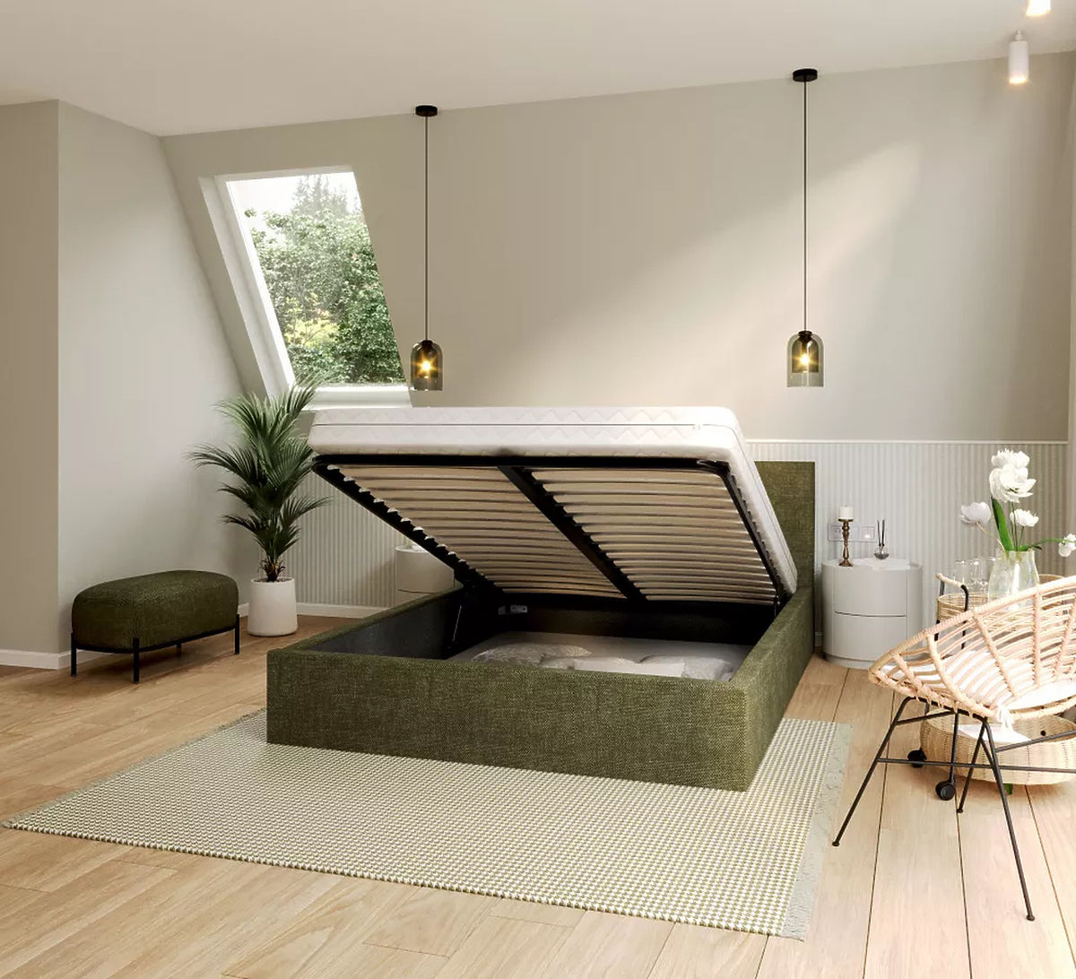 Posteľ TULSA je vybavená zdvíhacím roštom a zdvíhacími piestami, ktoré umožňujú vytvoriť užitočný úložný priestor pod posteľou. Tento typ úložného priestoru je mimoriadne praktický, najmä v spálňach, kde je väčšia úspora miesta kľúčová. Kvalitná nábytková doska z ktorej je posteľ vyrobená, zvyšuje pevnosť postele a umožňuje jej odolávať rôznym záťažiam a tlaku.