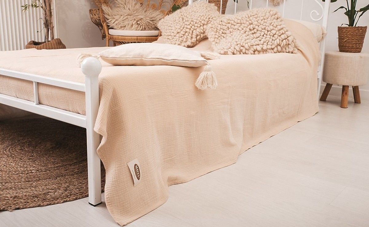 Mušelínový prehoz na posteľ 240x210 cm. Je ľahký, príjemný a jemný na dotyk. Má vynikajúce priedušné vlastnosti a schopnosť regulovať teplotu. Nevyžaduje žehlenie, vždy pôsobí esteticky a dodáva spálni útulný vzhľad.