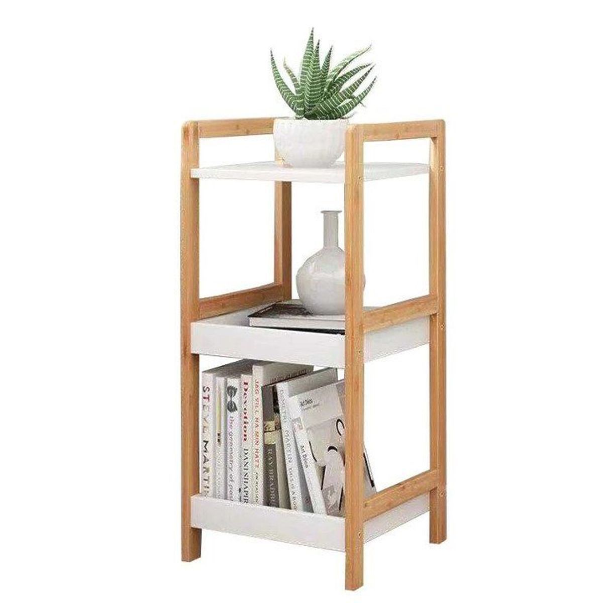 Knižnica ModernHome s bambusovým rámom a bielymi policami. .. viac
