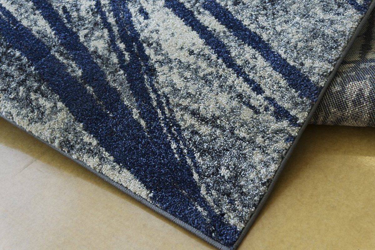 Model Pescara Navy je elegantný koberec s motívom nepravidelných línií v modrých tónoch. Jeho nevšedné kúzlo zaujme hneď na prvý pohľad. Vytvára príjemnú modernú atmosféru a jeho motív vnáša do miestnosti emelecký nádych.