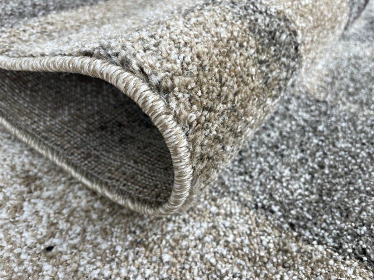 Kusový koberec Aspect v odtieni béžovej sú vyrobené zo 100% polypropylového vlákna typu frisé, čo zaručuje príjemný povrch . Jeho hustý vlas je 12 mm vysoký. Je vybavený antistatickou úpravou a chemlonovým obšitím v rovnakej farbe ako koberec.