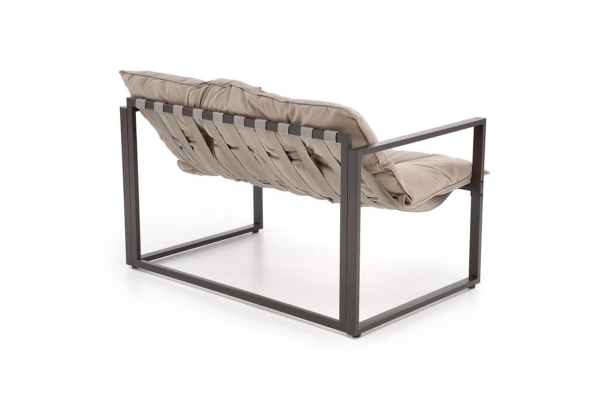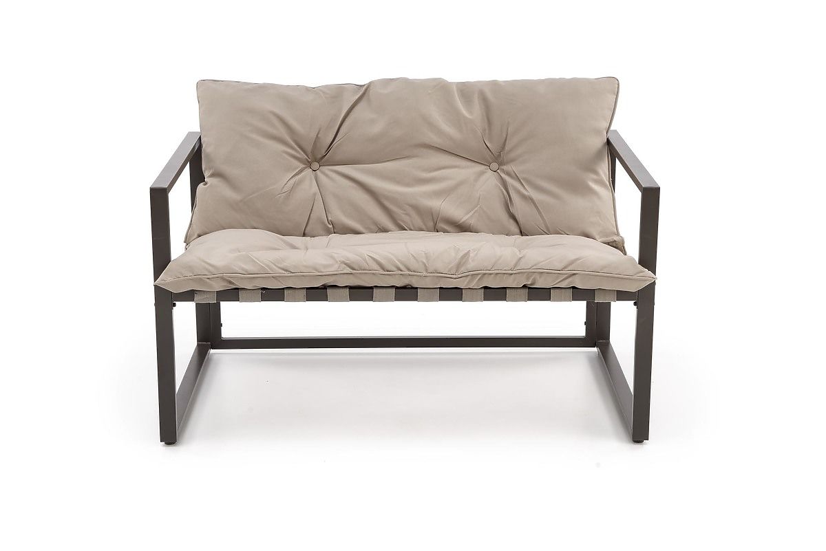 Čalúnené vankúše v cappuccino farbe zaručujú pohodlie a relaxáciu pri pobyte vonku, zatiaľ čo oceľový rám poskytuje stabilnú konštrukciu, ktorá vydrží mnoho sezón.