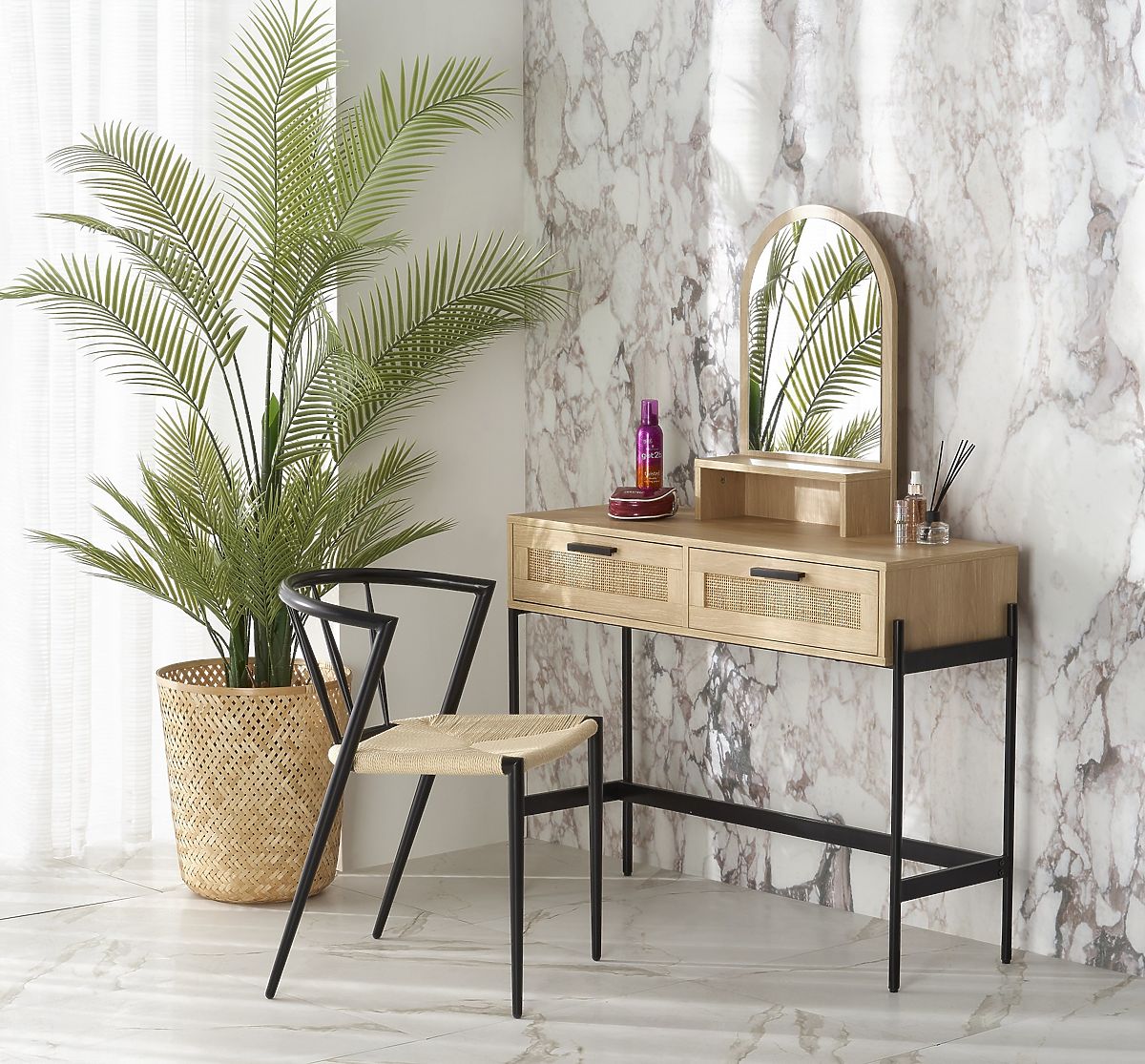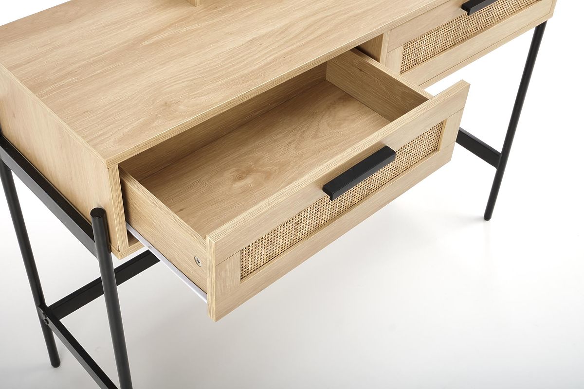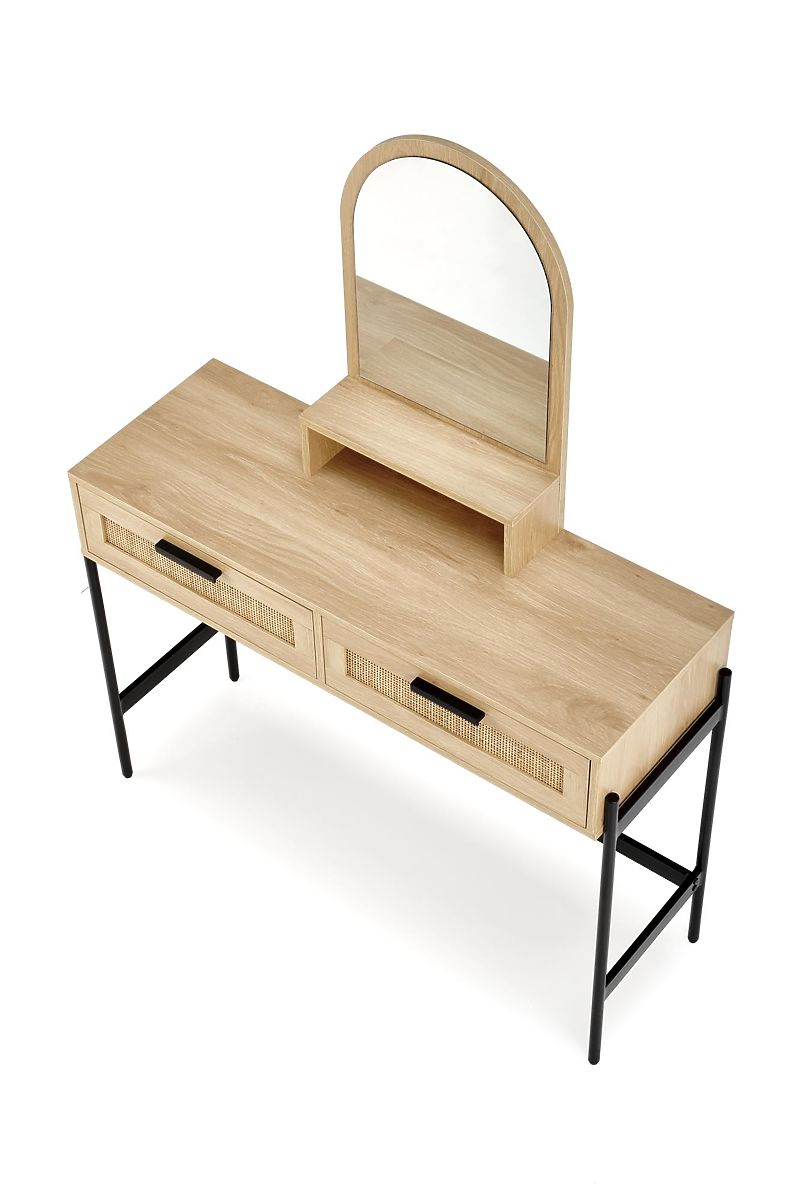 Stolík je vybavený dvoma uzatvárateľnými šuplíkmi a praktickým zrkadlom, ktoré vám umožnia pohodlne vykonávať vašu kozmetickú starostlivosť a líčenie. Tento ratanový stolík vytvorí dokonalý priestor pre vašu osobnú starostlivosť o krásu.