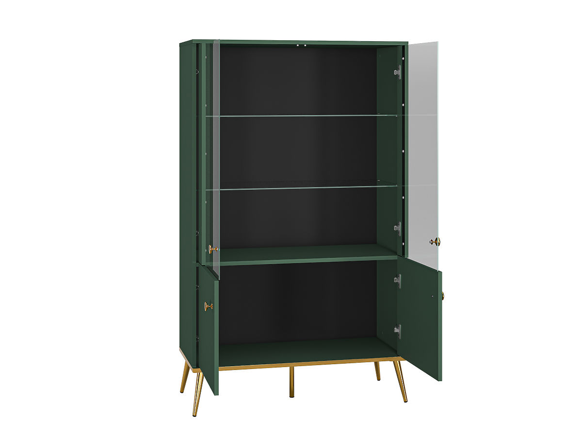 Pokiaľ hľadáte výnimočný kus nábytku, ktorý kombinuje jednoduchosť s eleganciou a prepája interiér s prírodnou krásou, potom táto väčšia presklená vitrína Forest nesmie u vás doma chýbať. Vitrína Forest v jedinečnom tmavo zelenom a zlatom prevedení sa hodí ako do moderne zariadeného domu, tak krásne doladí aj bývanie v retro štýle.