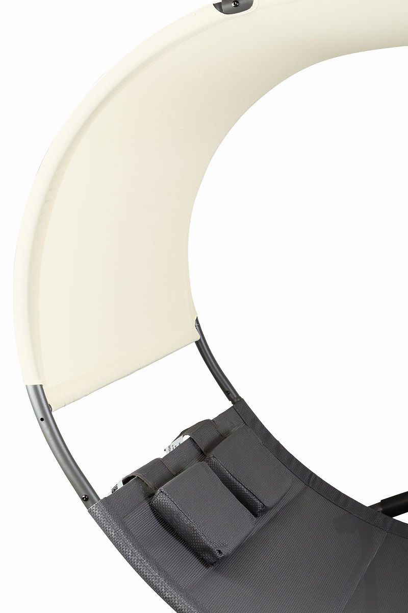 NAVRHNUTÉ PRE VÁSLežadlo svoju stabilitu a bezpečnosť vďačí správne profilovanému rámu a lyžinám, ktoré umožňujú jemné hojdanie. Veľký baldachýn poskytne príjemný tieň počas horúcich dní a ochráni nás pred UV žiarením, a ľahké hojdanie nám navyše spríjemní čas strávený vonku s naším najbližším. Vysoko kvalitný materiál, z ktorého je ležiaca plocha ležadla vyrobená, "dýcha" a prepúšťa vodu, vďaka čomu je odolný voči poveternostným podmienkam.