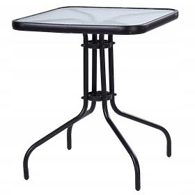 DOBRE NAVRHNUTÝ ZÁHRADNÝ STOLÍKŠtvorcová doska o rozmeroch 60x60 cm zaručuje miesto pre 4 osoby, ktoré si na ňu môžu pohodlne odložiť svoje nápoje alebo dokonca jesť. Kovová konštrukcia zaisťuje stabilitu a doska z tvrdeného skla zaisťuje, že stolík je odolný a bezpečný aj pri veľkom zaťažení.