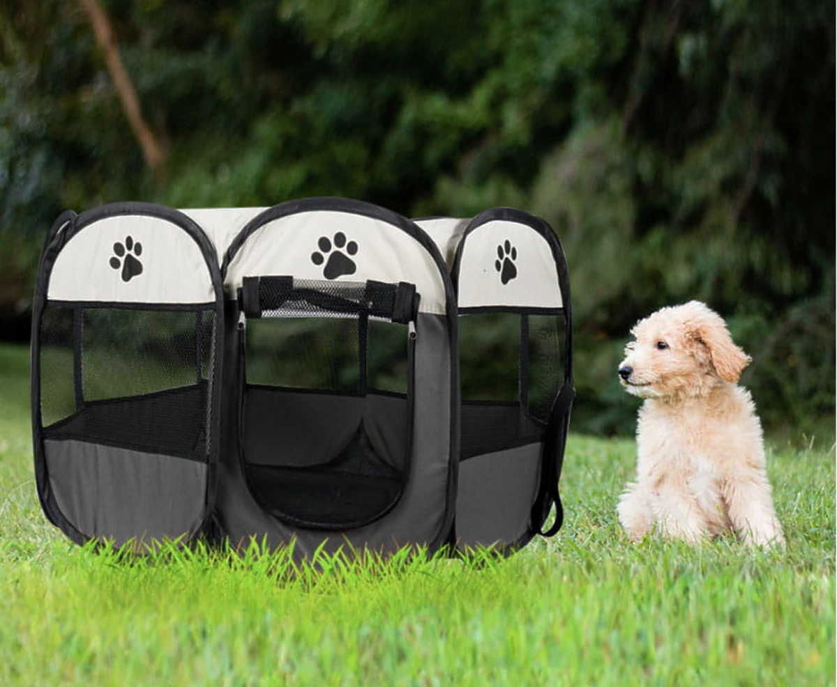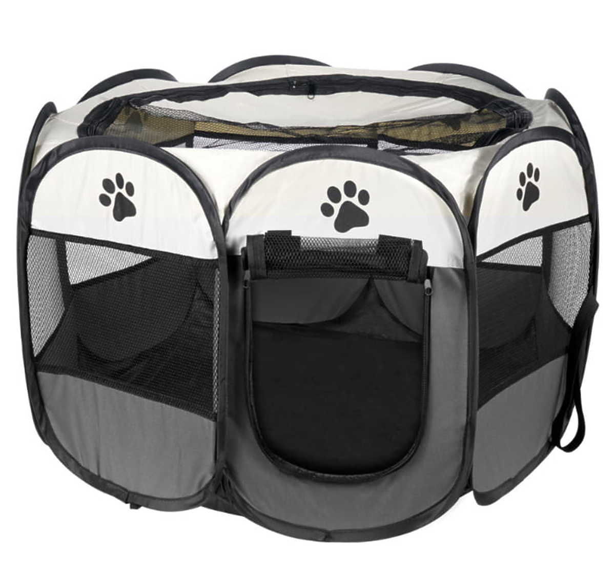 Skladacia textilná ohrádka vyrobená na pôdoryse osemuholníka určená pre psov, šteniatka, mačky a malé zvieratá. Ohrádka je ideálnym riešením pre majiteľov zvierat, najmä keď je potrebné vymedziť bezpečný priestor pre ich miláčikov. Produkt je vhodný na použitie doma aj vonku.