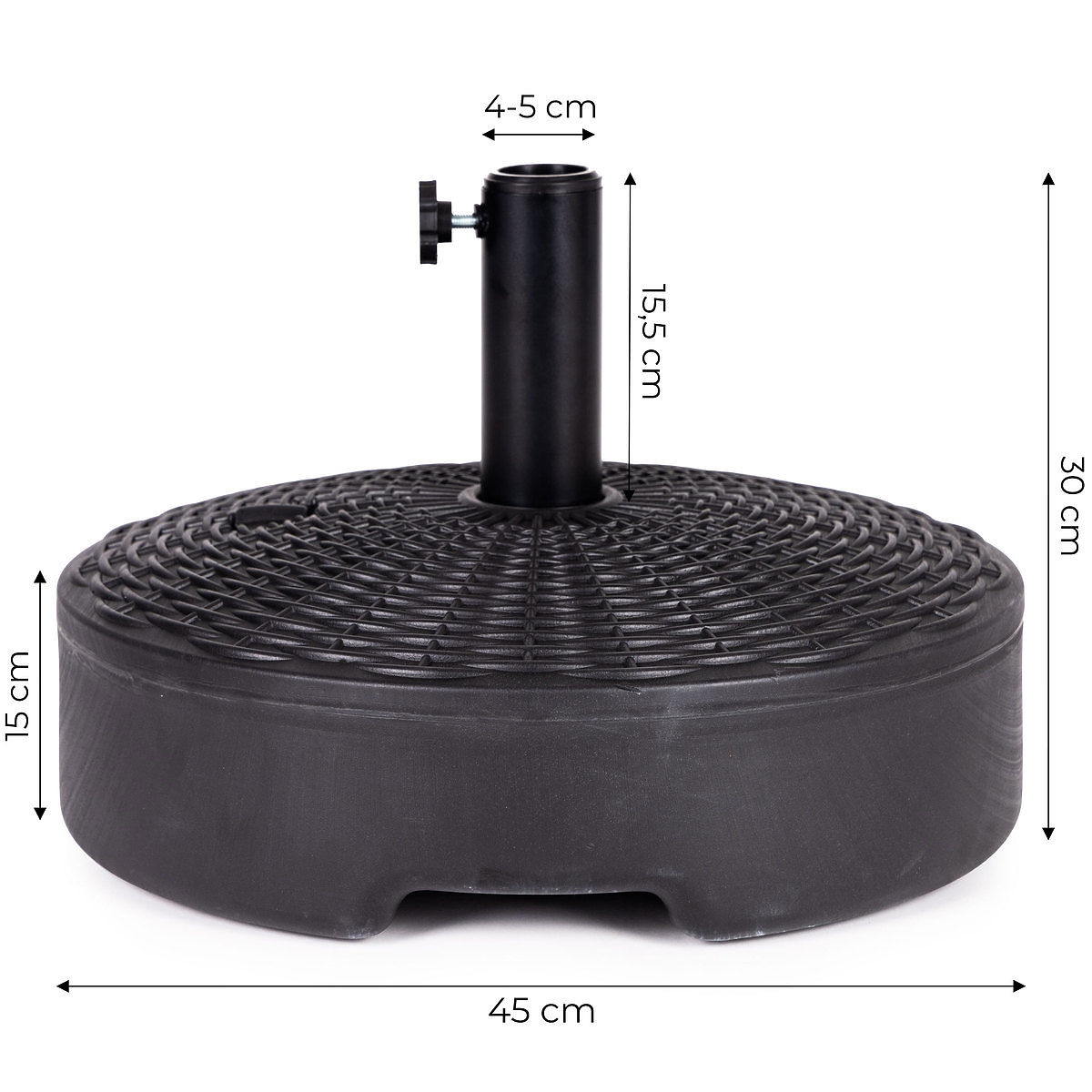 Záťaž sa osvedčí v každej záhrade, na terase a všade tam, kde budete stavať slnečník. Stačí ju naplniť vodou a je pripravená na použitie, vďaka veľkej kapacite (22 litrov) udrží slnečník vo zvislej polohe.