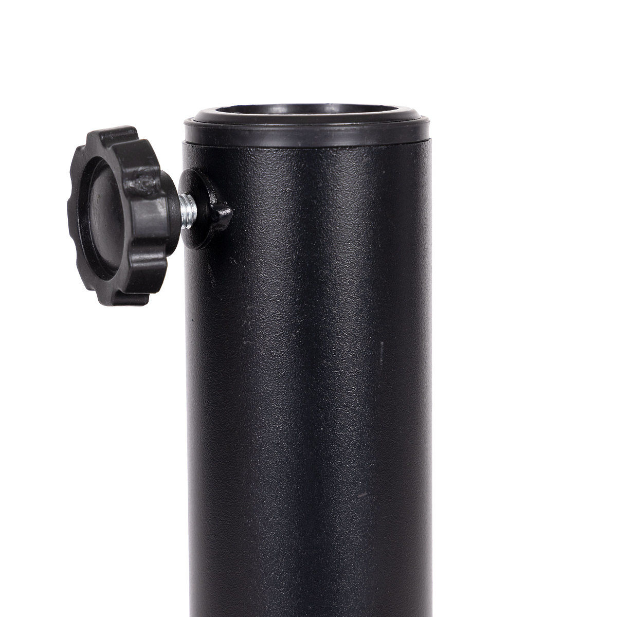 UPÍNANIE SLNEČNÍKAMiesto, kde sa slnečník upevňuje, je vyrobené z práškovo lakovaného kovu. Otvor má dva krúžky s priemerom 4 a 5 cm, vďaka ktorým bez problémov namontujete svoj slnečník. Špeciálna skrutka bude navyše pritláčať rúrku slnečníka, aby stál pevne.