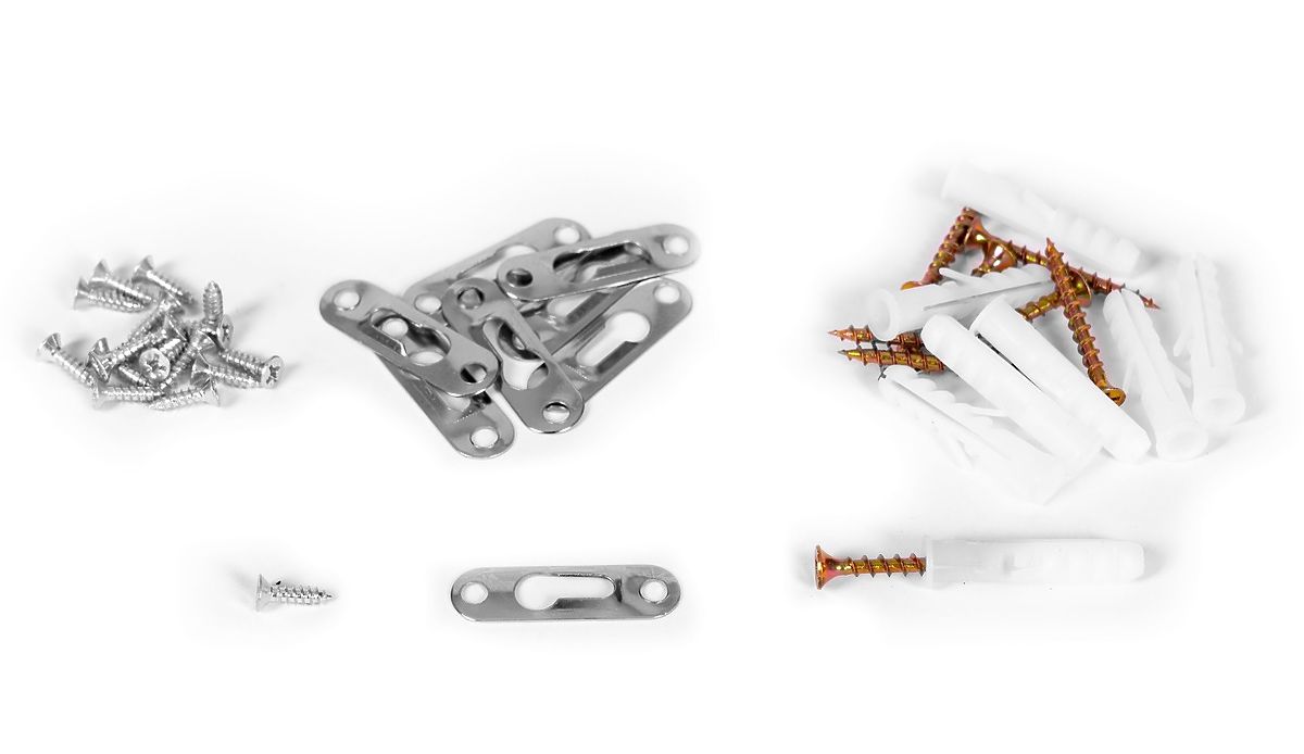 MONTÁŽ NA STENUV balení sú špeciálne kovové uholníky a skrutky, ktorými môžete police pripevniť k stene.