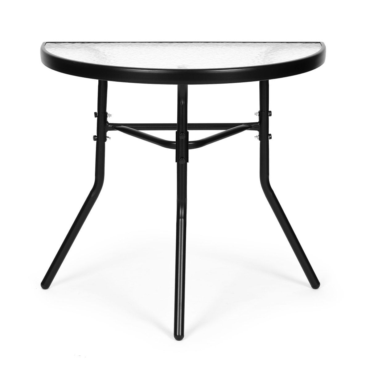 Lukahome.sk » Záhradný nábytok / Záhradné stoly / Polkruhový sklenený konferenčný stolík na balkón, terasu, patio čierny