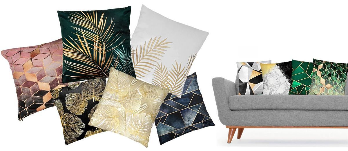 Štýlová obliečka na vankúš s 3D efektom v zeleno-zlatých tónoch. .. viac