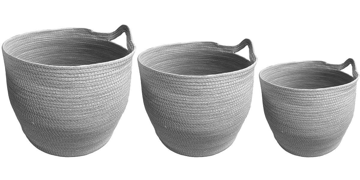 Moderná sada troch šedých košov BOHO zútulní každú miestnosť vášho interiéru. Tieto štýlové, ručne pletené koše skvele nahrádzajú tradičné krabice a vďaka svojej konštrukcii sú ľahké a vzdušné. Skvele sa hodia do obývačky, spálne alebo kúpeľne, kde poskytnú dostatok priestoru na uloženie rôznych predmetov a zároveň skrášlia váš domov.