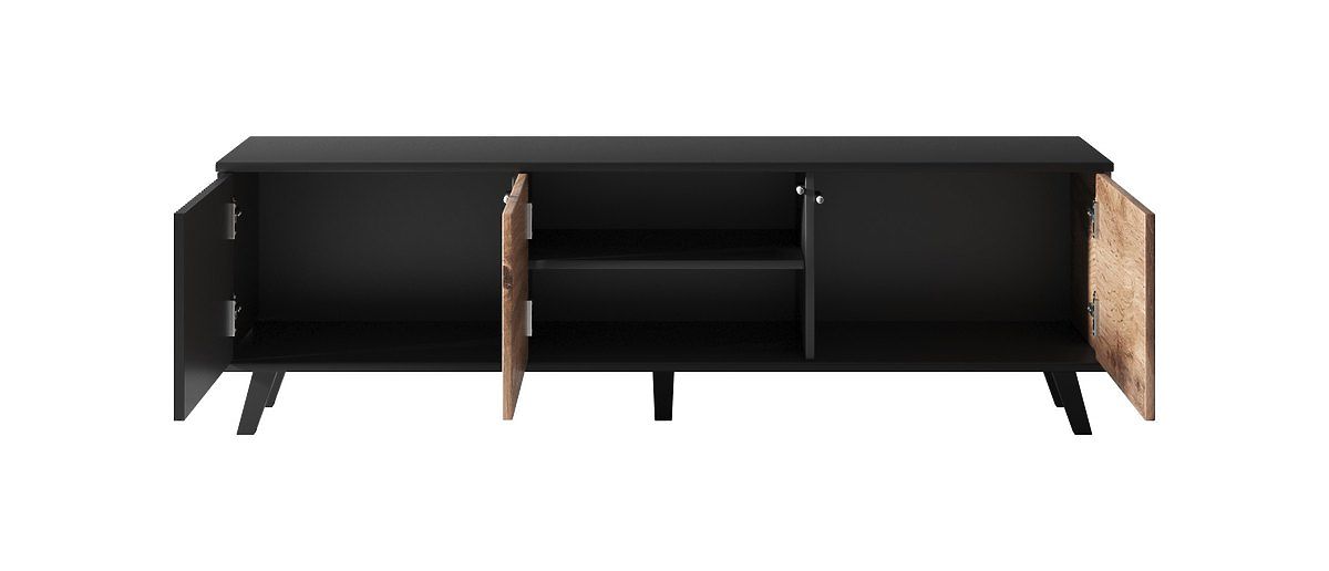 Materiál: TV stolík je vyrobený z dýhovaného MDF a dýhovanej nábytkovej dosky, čo zaručuje jeho odolnosť a dlhú životnosť. MDF je známa svojou stabilitou a hladkým povrchom, ideálnym pre kvalitné povrchové úpravy. Nohy stola sú z polypropylénu, ktorý poskytuje pevnosť a stabilitu.