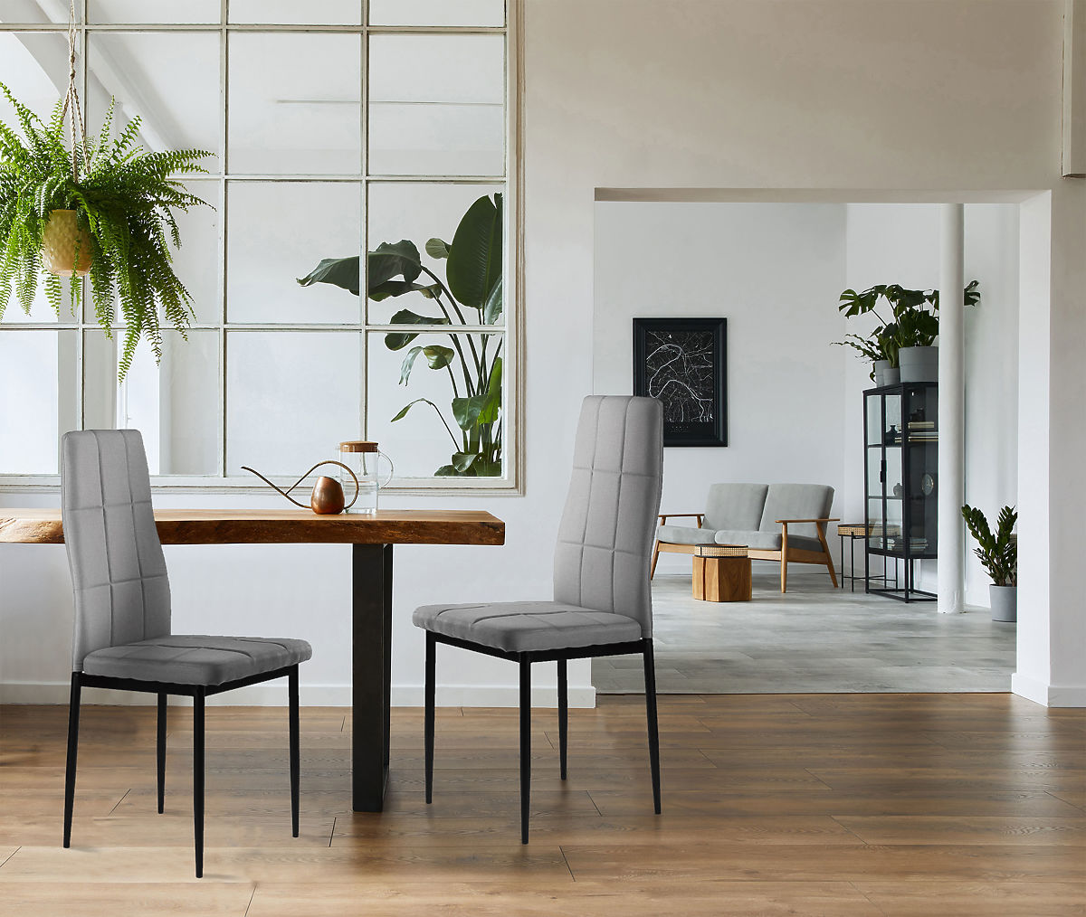 Stoličky budú skvele ladiť s rodinným stolom vo vašej jedálni a kuchyni. Sivý prešívaný nábytok vyrobený z príjemnej látky na dotyk sa hodí do každého interiéru a dodá mu správny šarm.