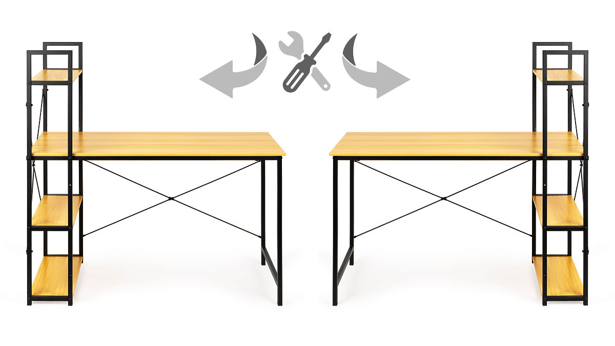 Možnosť zloženia stola s policami na ľavej alebo pravej strane