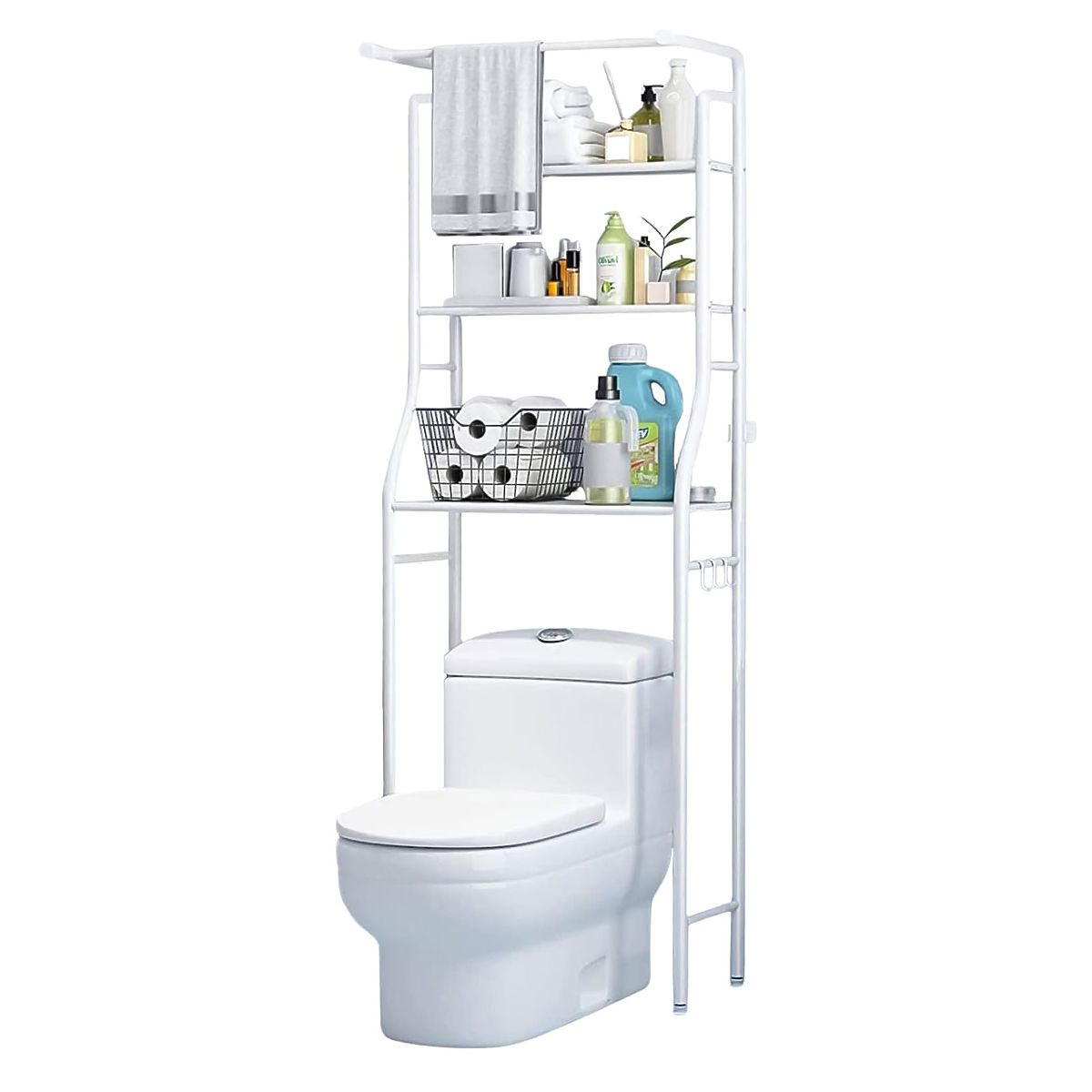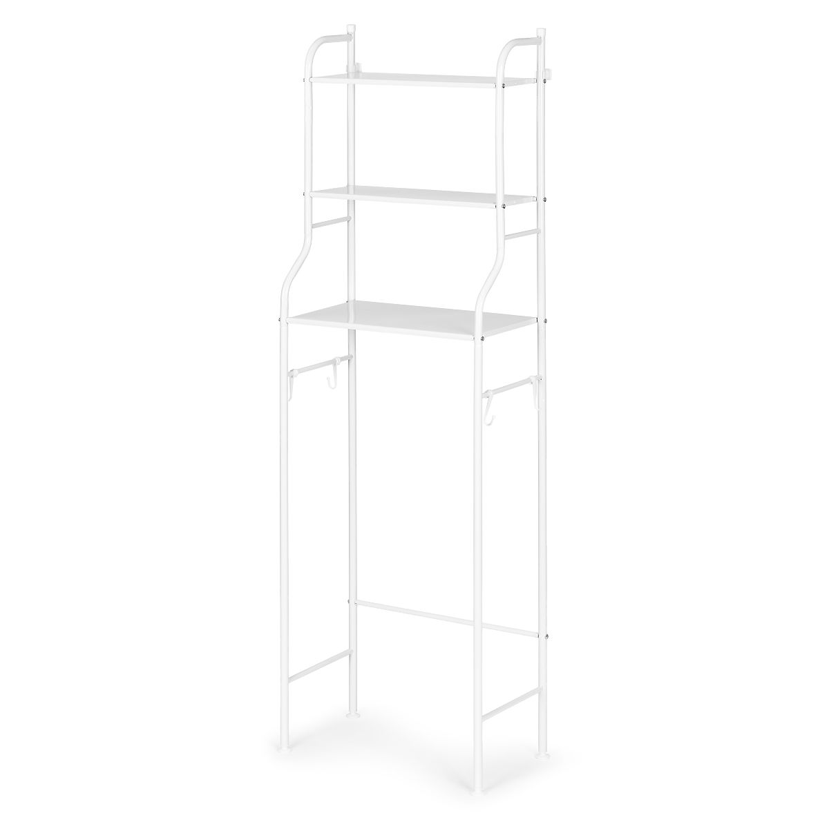 Regál nad toaletou je vynikajúcim riešením pre tých, ktorí hľadajú funkčnosť a majú málo voľného priestoru. Jeho hliníková, stabilná konštrukcia jednoduchého tvaru zaisťuje nielen trvanlivosť a funkčnosť, ale aj moderný vzhľad, ktorý sa dokonale hodí do každého kúpeľňového aranžmánu. Jeho univerzálnosť zaisťuje, že regál je tiež ideálny nad práčku, čo umožňuje optimálne využitie dostupného priestoru v kúpeľni. Navyše je regál vybavený 2 policami o rozmeroch 16,5 x 43 cm a 1 policou o rozmeroch 24,5 x 43 cm, čo umožňuje ukladanie predmetov rôznych veľkostí a tvarov.