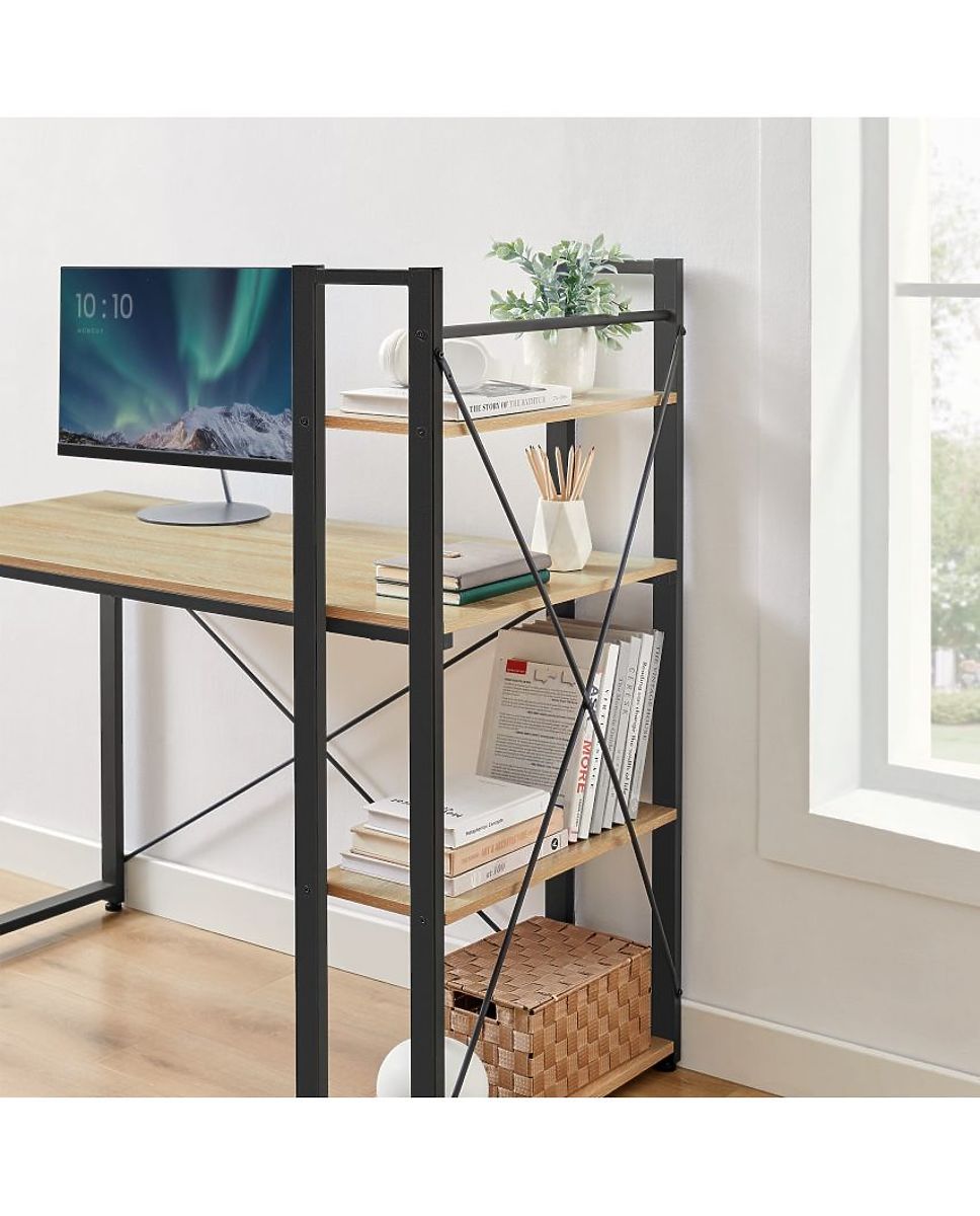 Lukahome.sk » Stoly a stolíky / Písacie stoly / Počítačový stôl s regálom a nastaviteľnými nožičkami dub sonoma