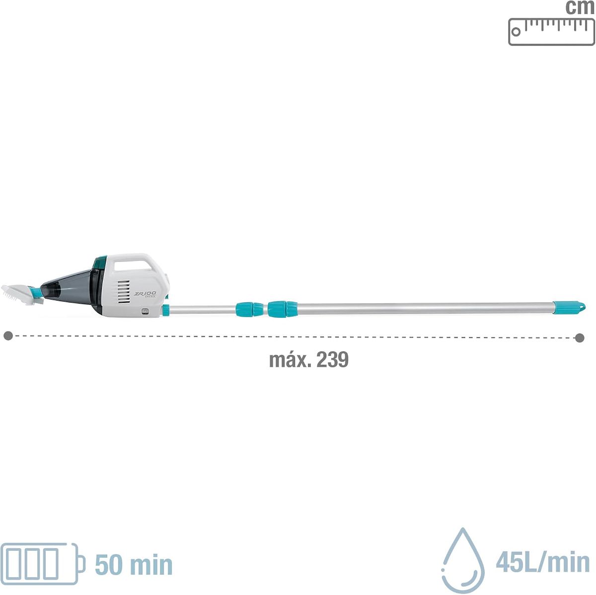 Udržiavanie čistého bazéna nikdy nebolo tak jednoduché! Bezdrôtový vysávač Intex Rechargeable Pool Vacuum je spoľahlivým riešením pre každého majiteľa záhradného bazéna. Vybavený výkonnou Ni-MH batériou, umožňuje 50 minút nepretržitej prevádzky na jedno nabitie, účinne odstraňuje nečistoty. Vďaka teleskopickej tyči s dĺžkou 239 cm a vymeniteľným kefovým nadstavcom dosiahne zariadenie aj na ťažko prístupné miesta. Vodotesnosť na úrovni IPX8 zaručuje plnú bezpečnosť používania. Je to ideálna voľba pre bazény s priemerom do 5,49 m. Zabezpečte si krištáľovo čistú vodu a užívajte si bezproblémovú údržbu bazéna počas celej sezóny!