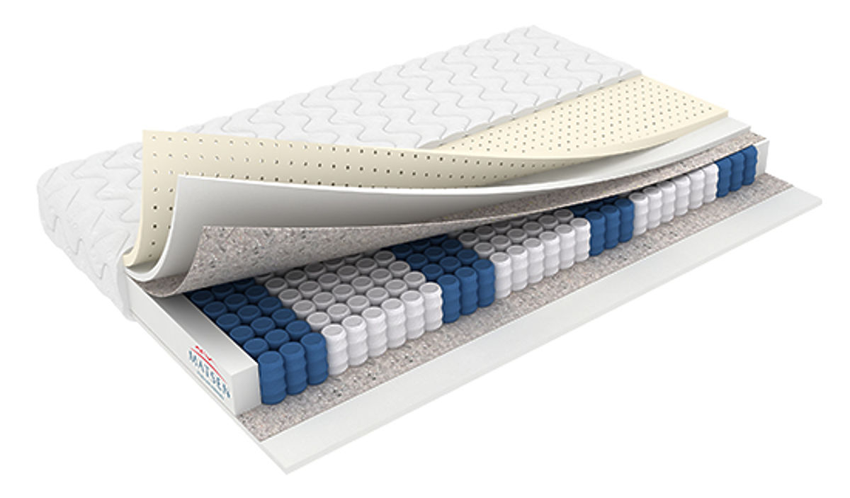 Matrac Milano je 7-zónový taštičkový matrac s vrstvou latexu, ktorá zabezpečuje pružnú a ortopedickú oporu tela. Vďaka vysokej priedušnosti pomáha udržiavať hygienické prostredie a obmedzuje vznik roztočov. Latexová vrstva sa prispôsobuje tvaru tela, podporuje správnu polohu chrbtice a zároveň je odolná voči prachu. Konstrukcia matraca podporuje dobrú cirkuláciu vzduchu a komfort počas celej noci.