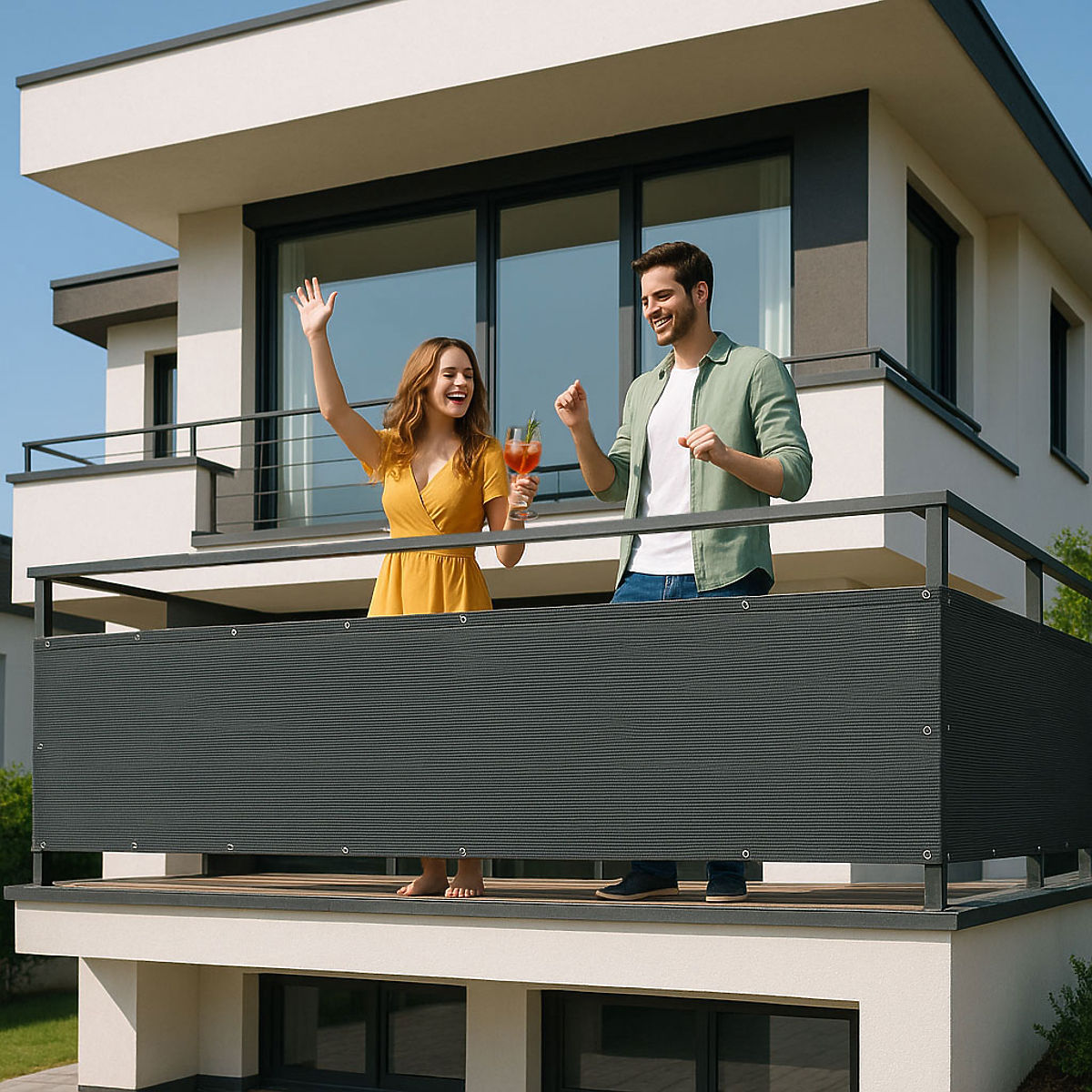 ODOLNOSŤ A ELEGANCIA V JEDNOMBalkónová clona je vyrobená z trvanlivého materiálu HDPE, ktorý sa vyznačuje vysokou odolnosťou voči mechanickému poškodeniu a UV žiareniu, čo jej umožňuje zachovať si intenzívnu farbu aj napriek dlhodobému slnečnému žiareniu. Materiál neabsorbuje vlhkosť, vďaka čomu je odolný voči plesni, deformáciám a premenlivým poveternostným podmienkam. Ľahká, ale odolná sieť účinne tieni priestor, a zároveň umožňuje voľný prietok vzduchu.