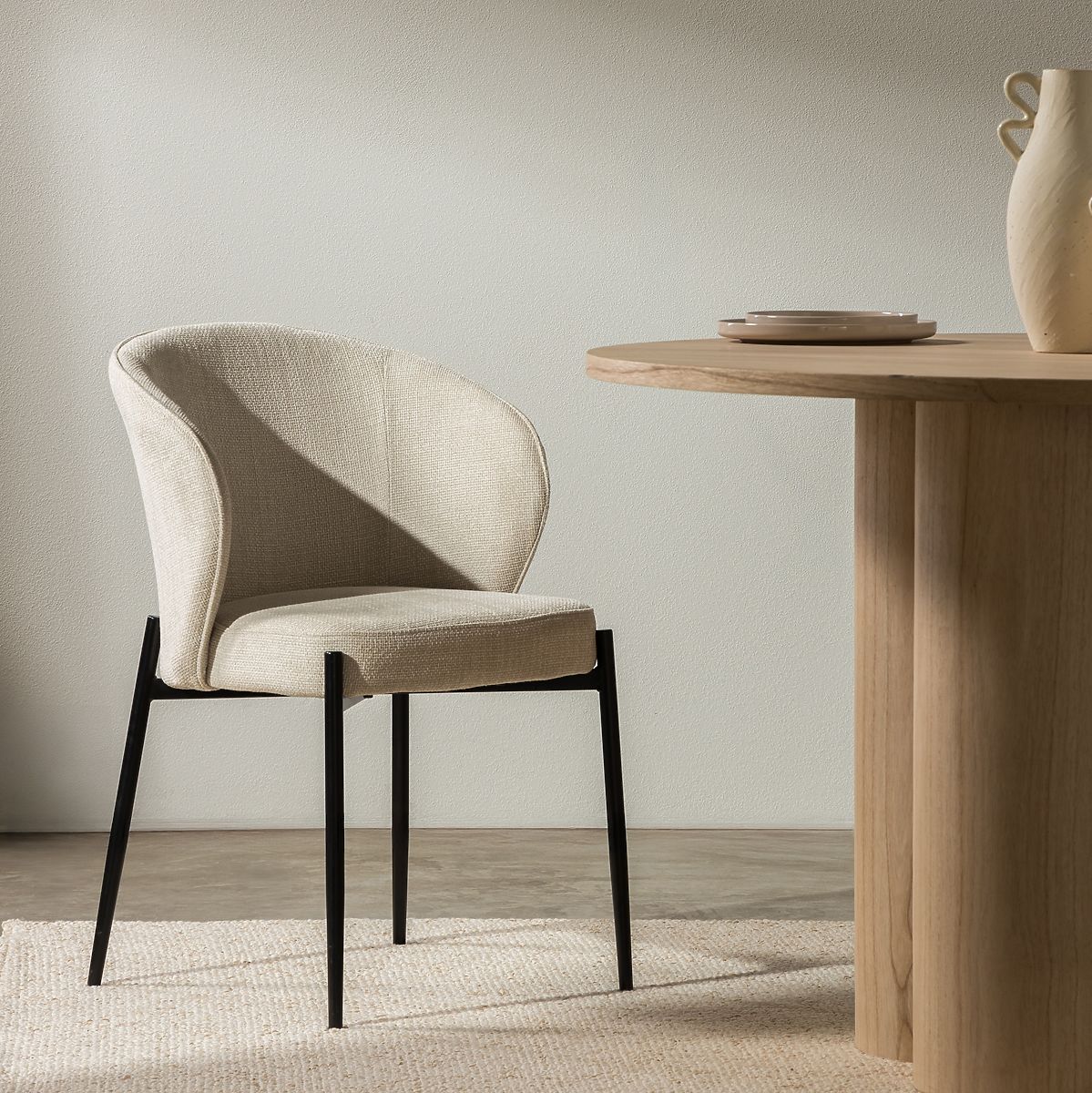 Jedálenská stolička Avery s béžovým čalúnením a čiernymi nohami. .. viac
