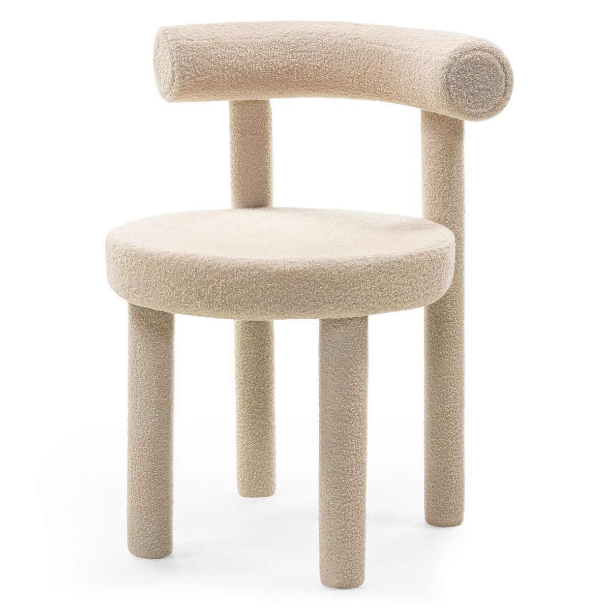 Stolička Pedro 2.0 s béžovou tkaninou boucle a zaobleným operadlom. .. viac