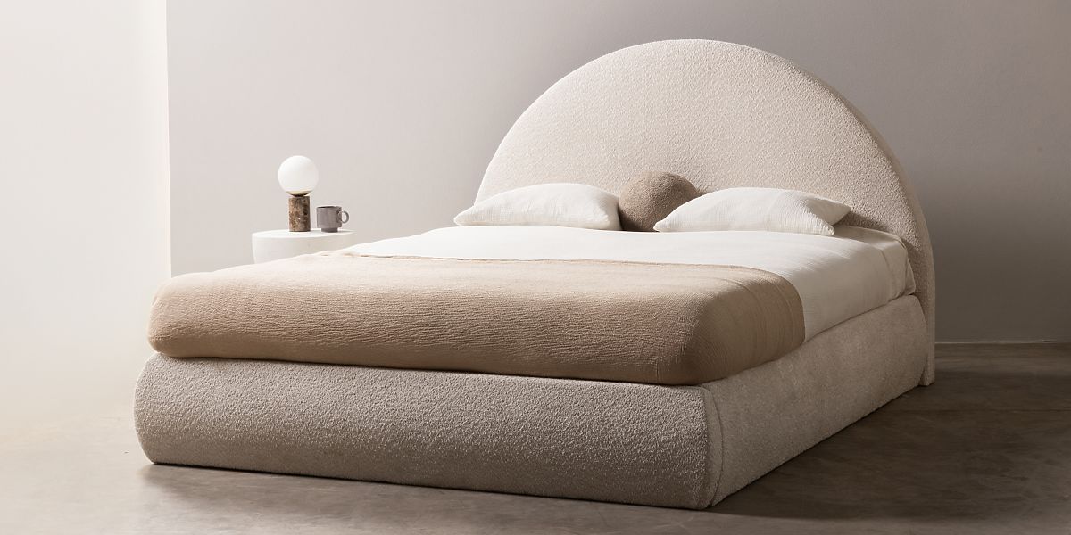 Lukahome.sk » Postele / Manželské postele / Postele 160x200 / Čalúnená posteľ Orbi 160x200 cm, s roštom a úložným priestorom, zaoblená, béžová