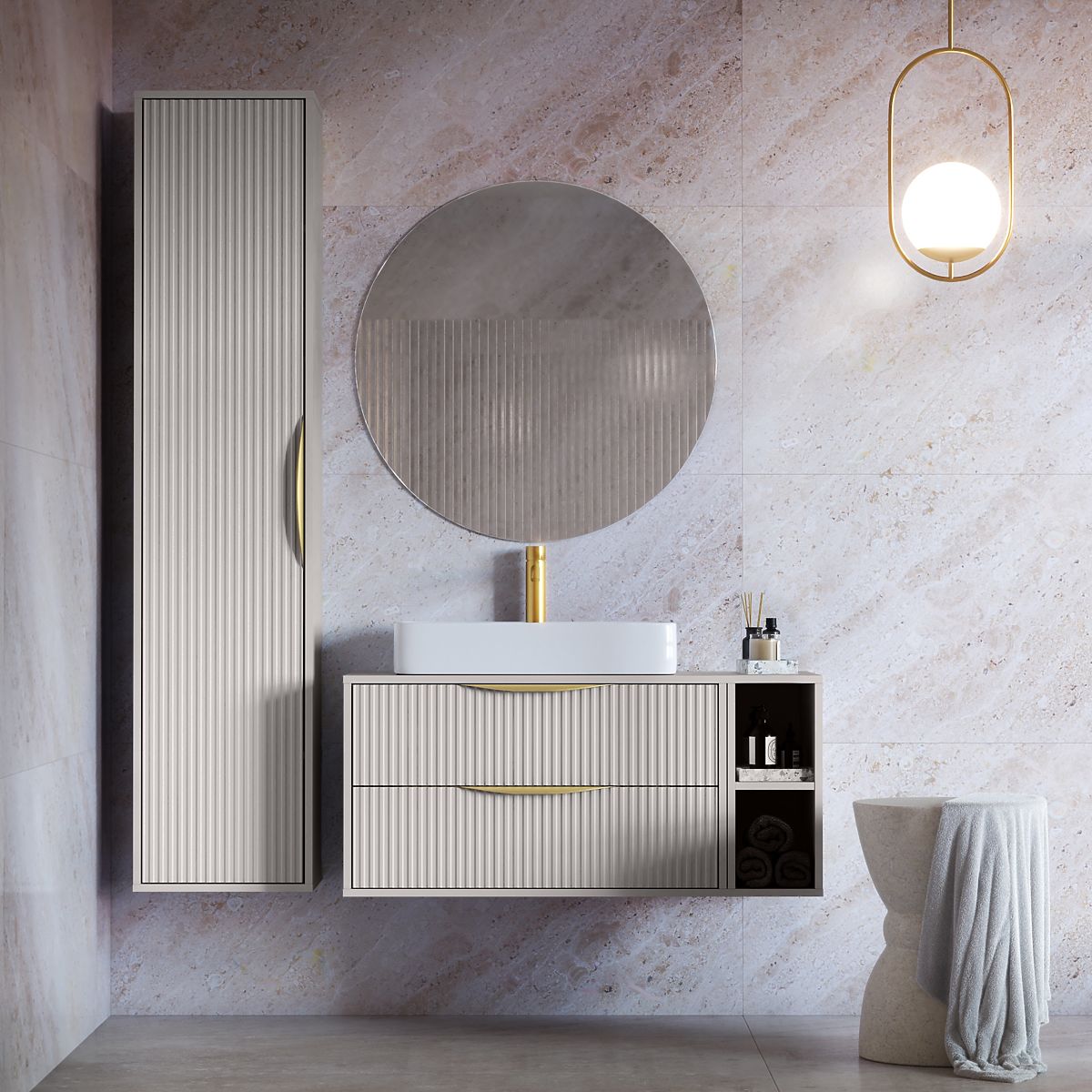Lukahome.sk » Kúpeľňa a WC / Kúpeľňové skrinky / Skrinka pod umývadlo na dosku Avila 2.0, 80 cm, ryhovaná, zlaté úchyty, kašmír
