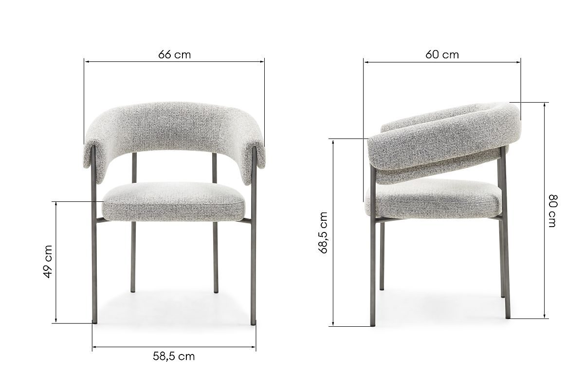 Čalúnená stolička Portia v modernom štýle so sivou látkou a kovovou konštrukciou. .. viac