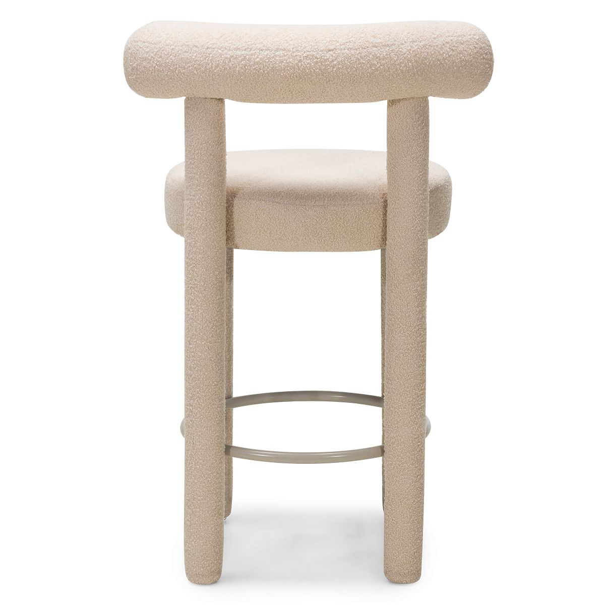 Béžová barová stolička s operadlom a poťahom z tkaniny boucle. .. viac