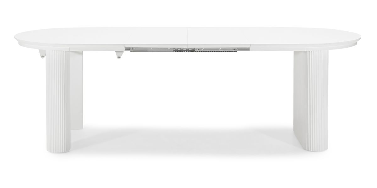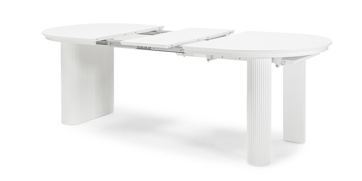 Elegantný biely rozkladací stôl s oválnou doskou a drážkovanými nohami. .. viac