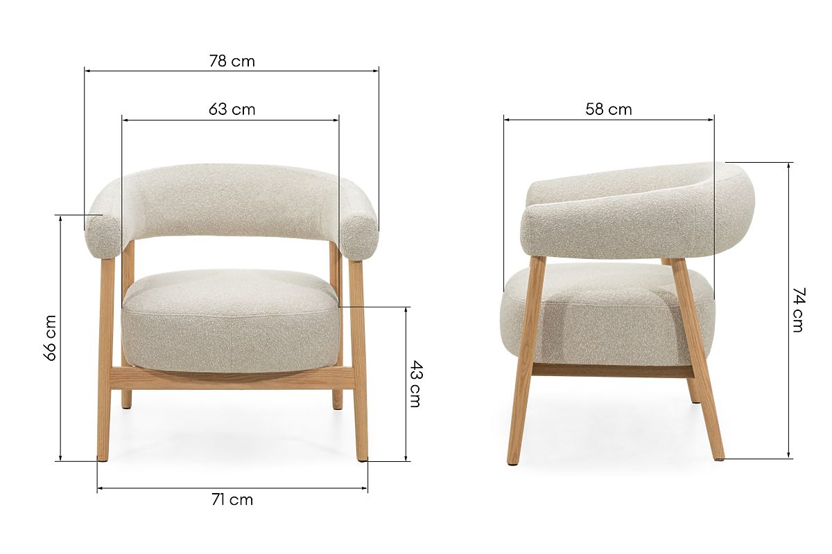 Lukahome.sk » Kreslá a sedenie / Kreslá / Čalúnená stolička/kreslo Montepulciano, svetlo béžová/dubové drevo, zaoblené