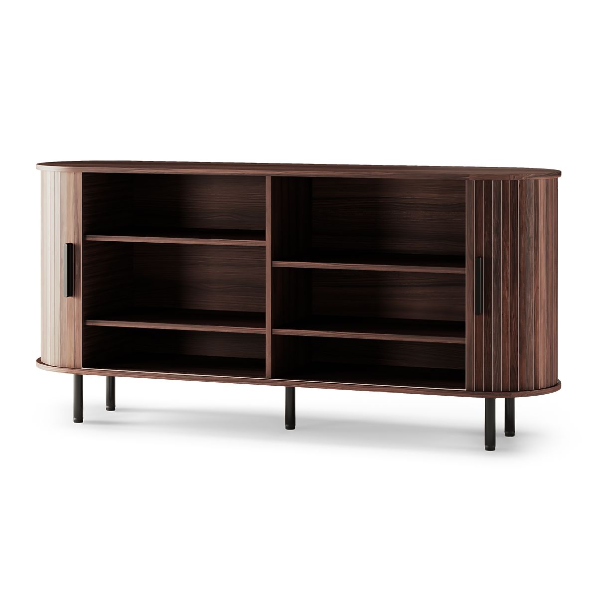 Dizajnová komoda Gliss s posuvnými dverami a orechovou farbou. .. viac
