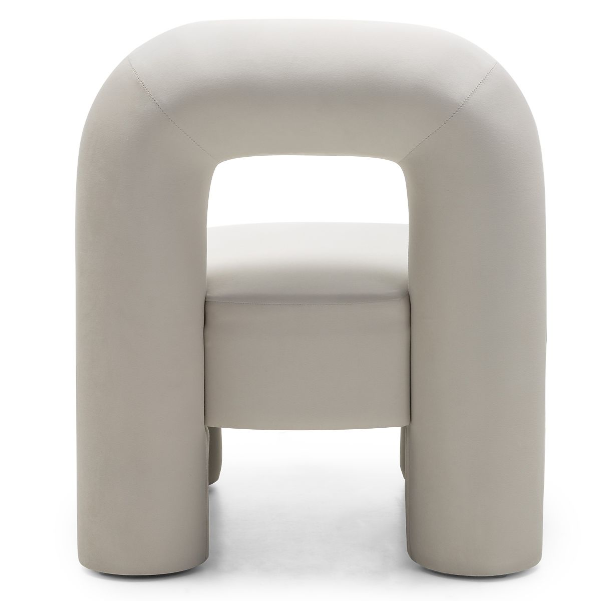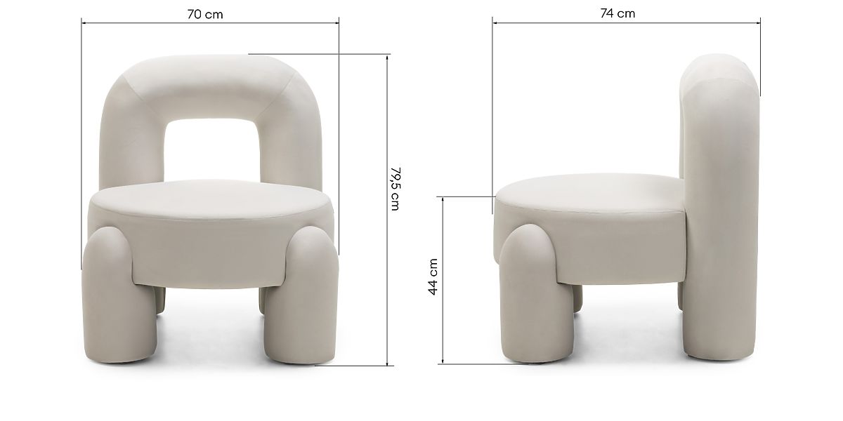 Zamatové kreslo Vasto s oblými tvarmi a krémovou farbou. .. viac