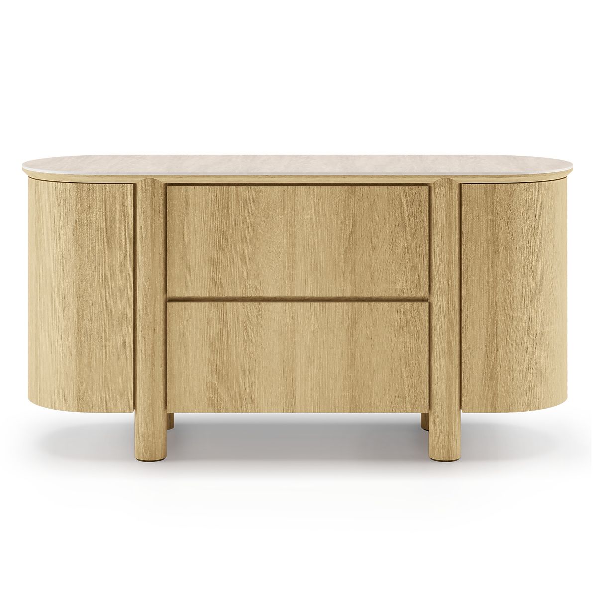 Lukahome.sk » Nábytok / Komody / Dvojdverová komoda so zásuvkami Segretto, zaoblená, prírodný dub, travertín