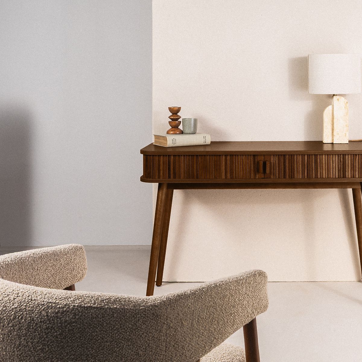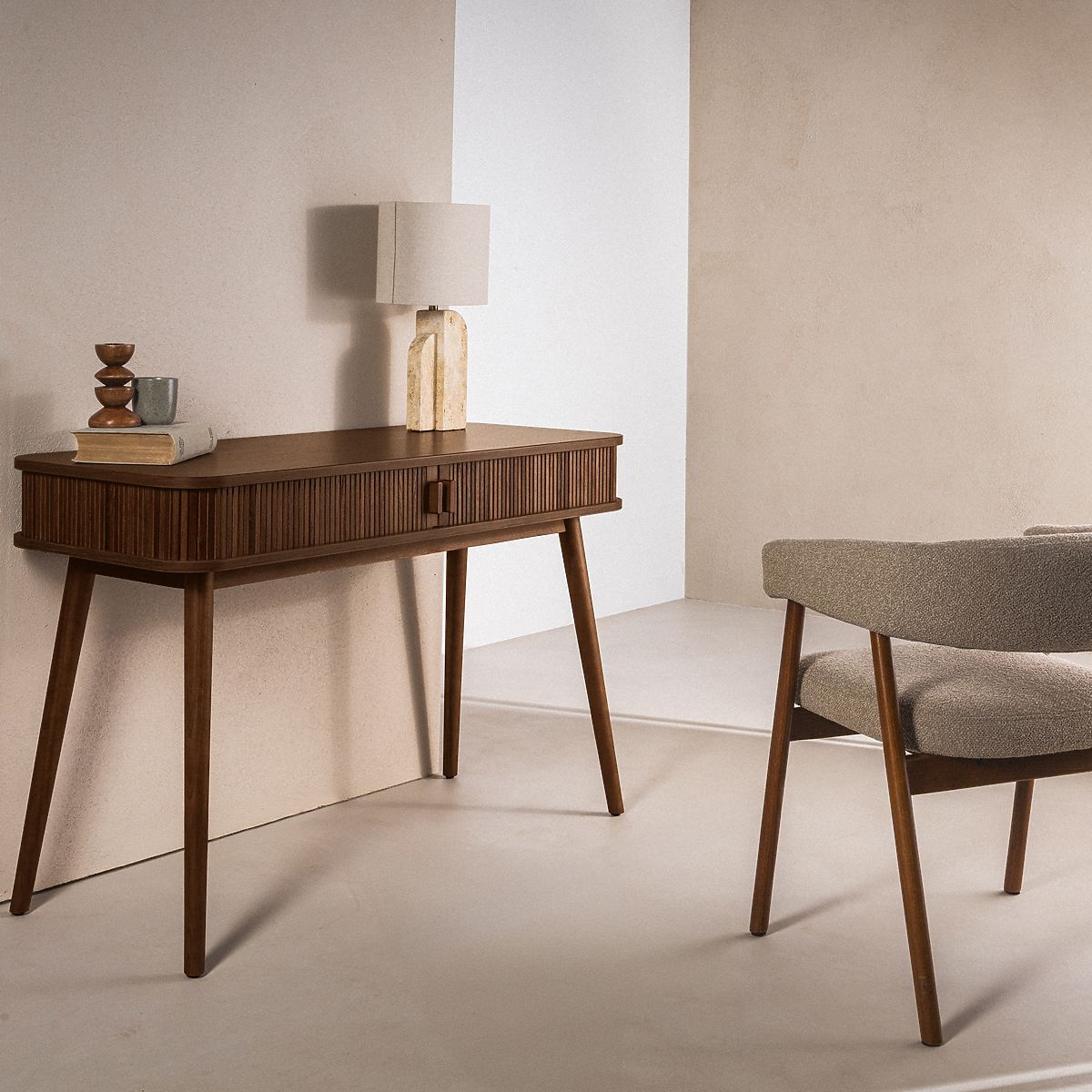 Písací stôl Clemente s lamelami a orechovým korpusom. .. viac