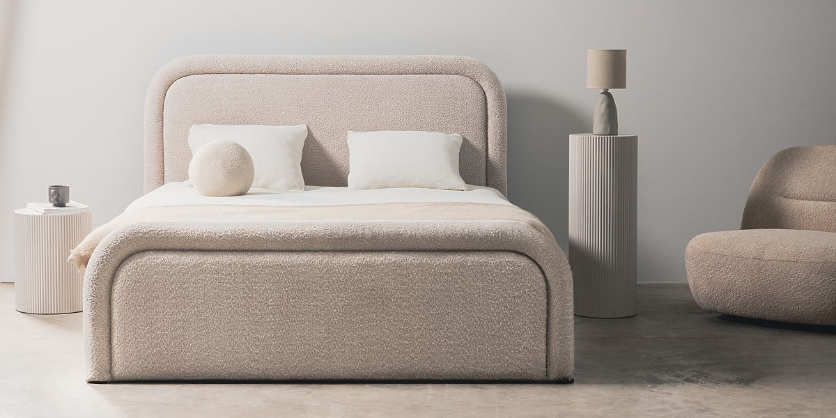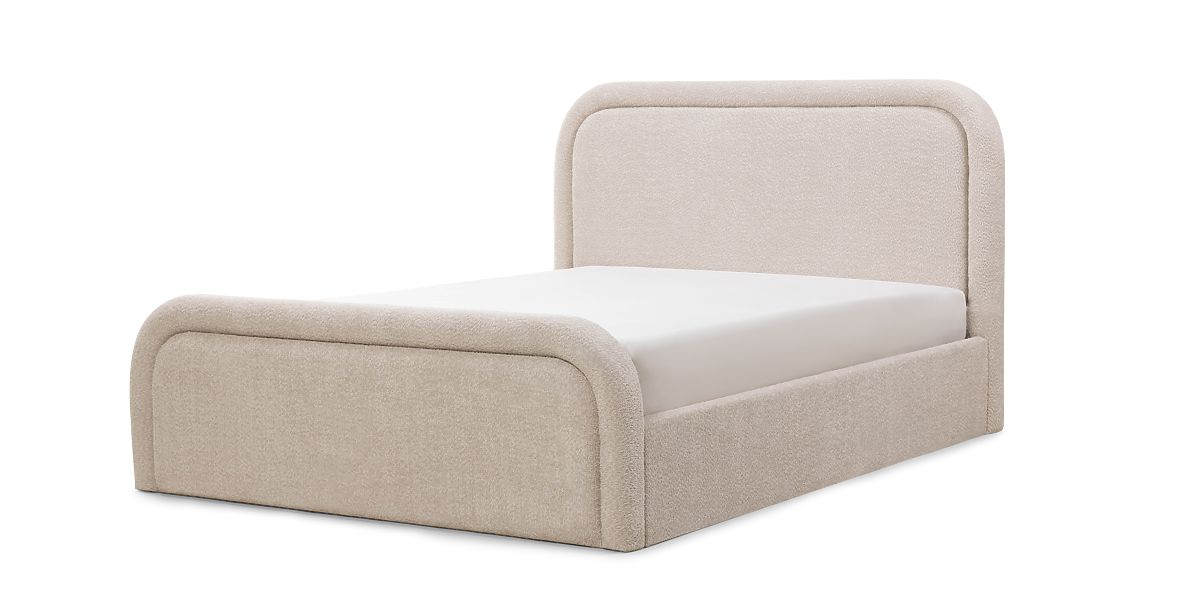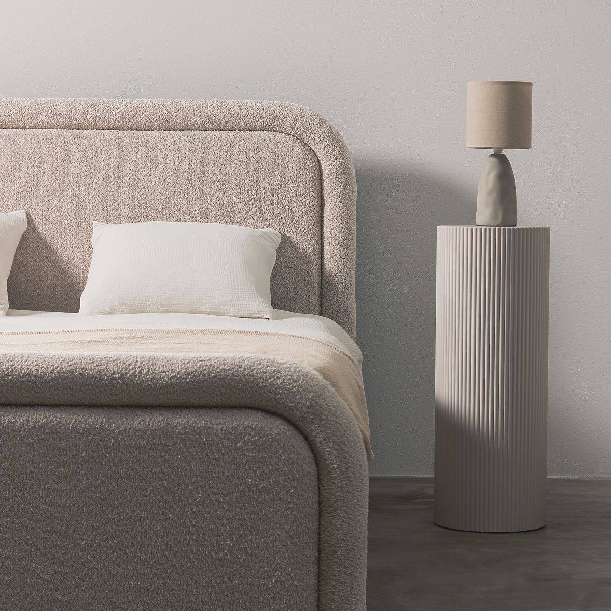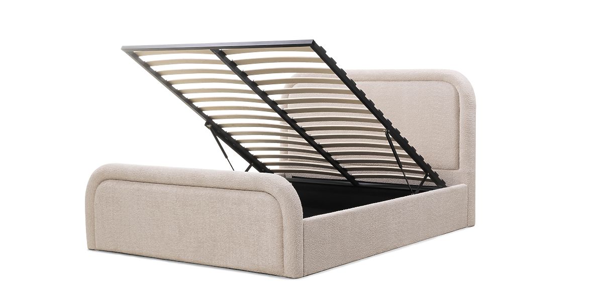 Posteľ Ovoid s úložným priestorom a béžovým čalúnením pre elegantnú spálňu. .. viac